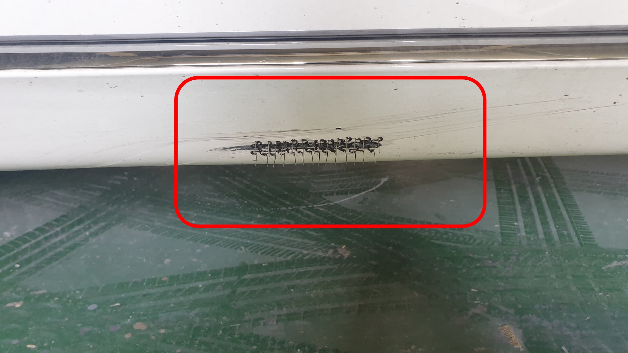 다행히 스태프 하단까지만 상처가 났습니다. 조금만 위쪽에 상처가 낫다면...문짝을 판금도색할 뻔 했습니다.