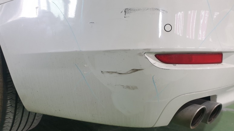 큰 파손은 아니기에 교환하지는 않고 범퍼도색으로 복원하기로 하였습니다.
