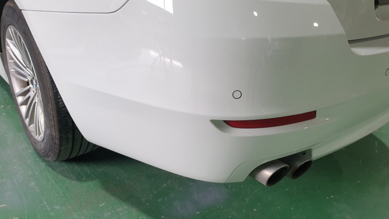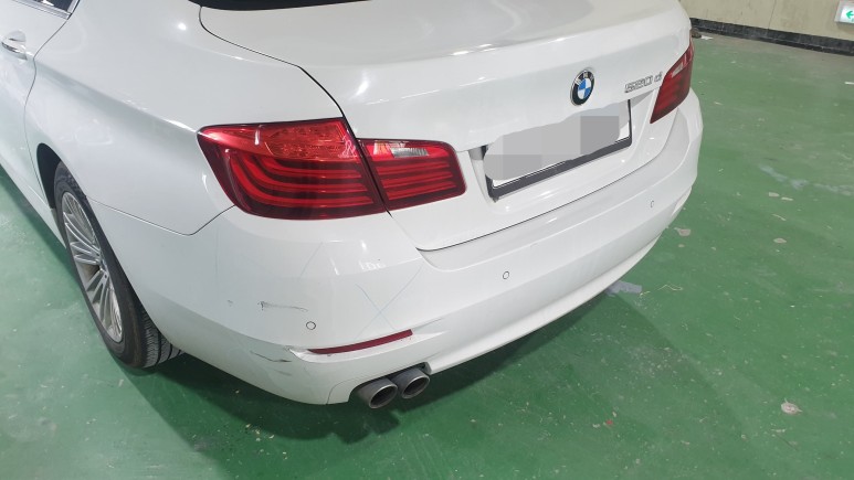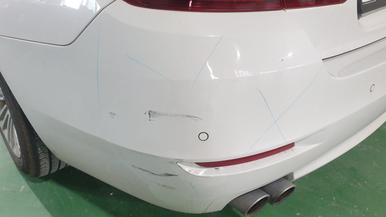 "BMW 520D 뒤 범퍼도색, 뒤 펜더 판금도색 작업 완료"