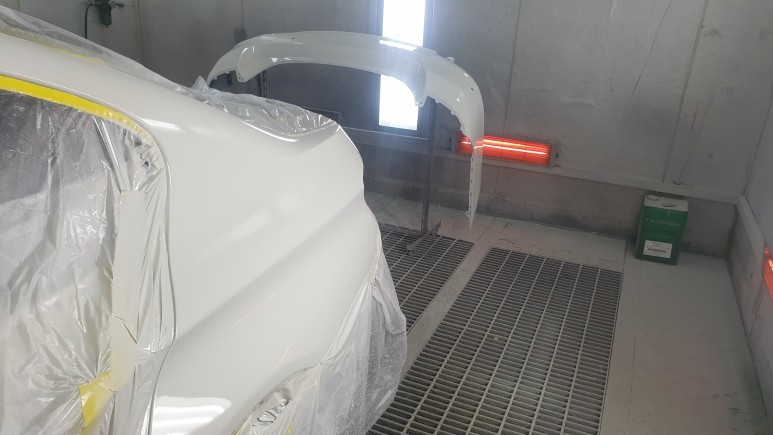 펜더 판금도색, 범퍼도색 작업이 끝나고 열처리 중입니다.