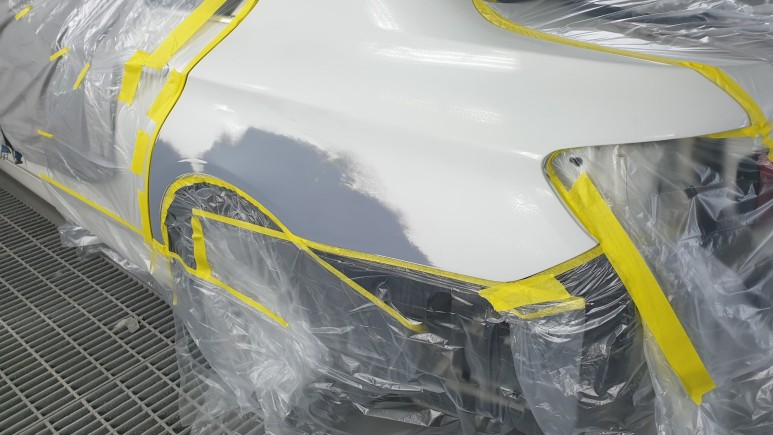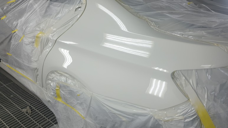 뒤 펜더와 뒤 범퍼도색 작업이 모두 끝났습니다.