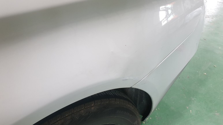 범퍼 도색하는 김에 운전석 뒤 휀다 판금도색도 같이 하기로 하였습니다.