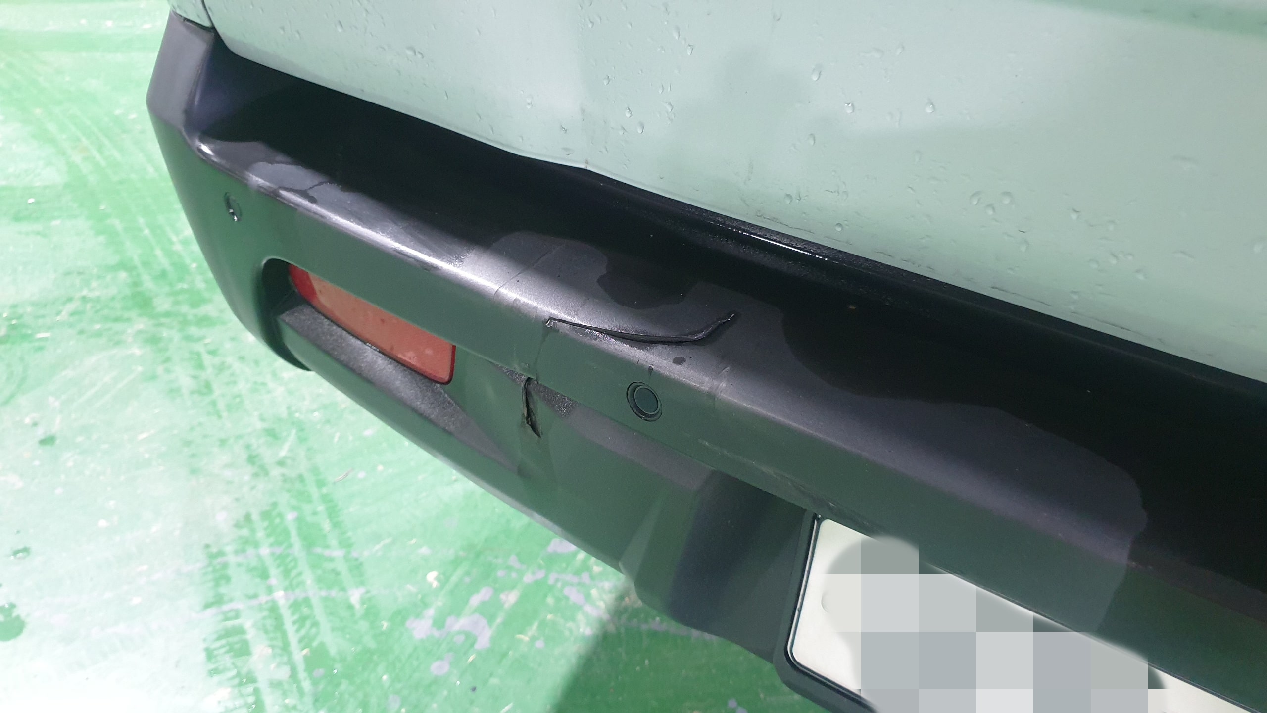 렉스턴 스포츠 뒷 범퍼는 도장이 되지 않는 플라스틱입니다.