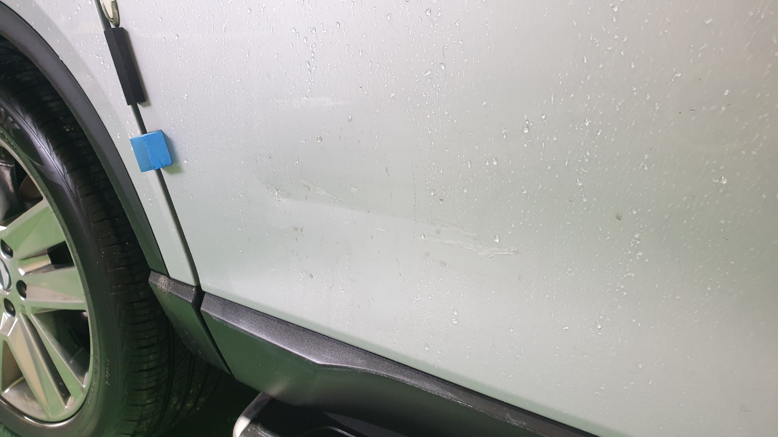 조수석 뒷문도 약간 길게 패이면서 찌그러졌는데 이번에 같이 판금도색 하기로 하였습니다.
