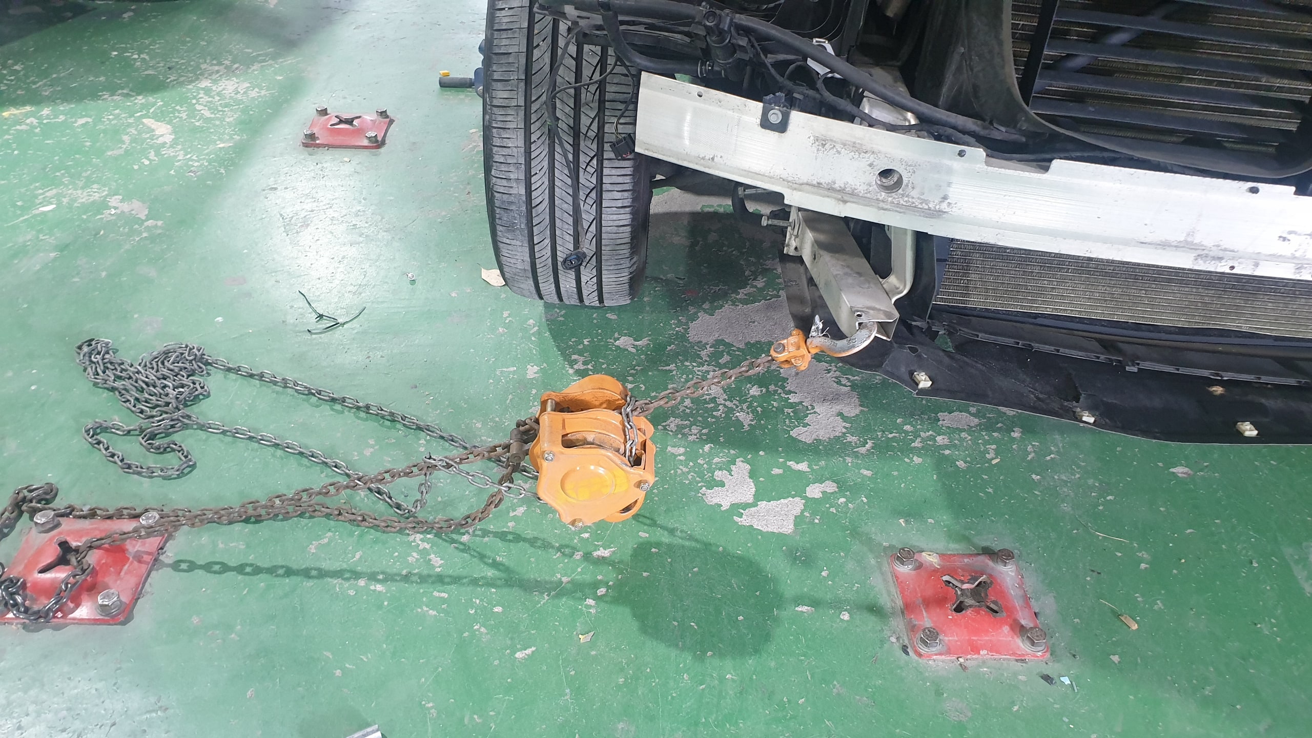 앞 범퍼가 심하게 찢어진 관계로 범퍼 교환이 불가피하게 되었습니다.