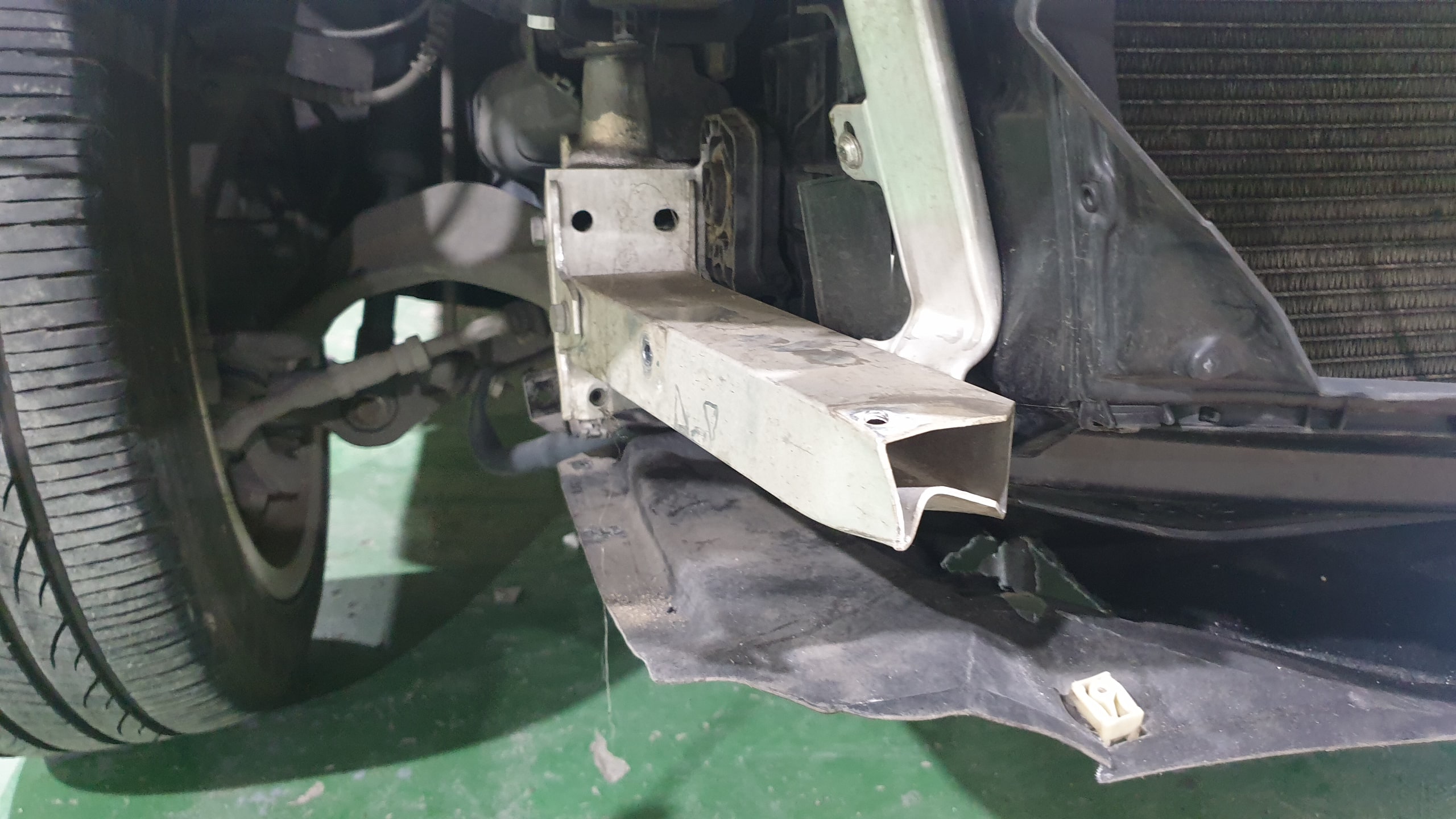 우측 사진은 차체 프레임과 연결되 알루미늄 부품인데 옆으로 밀리고 찌그러졌네요.