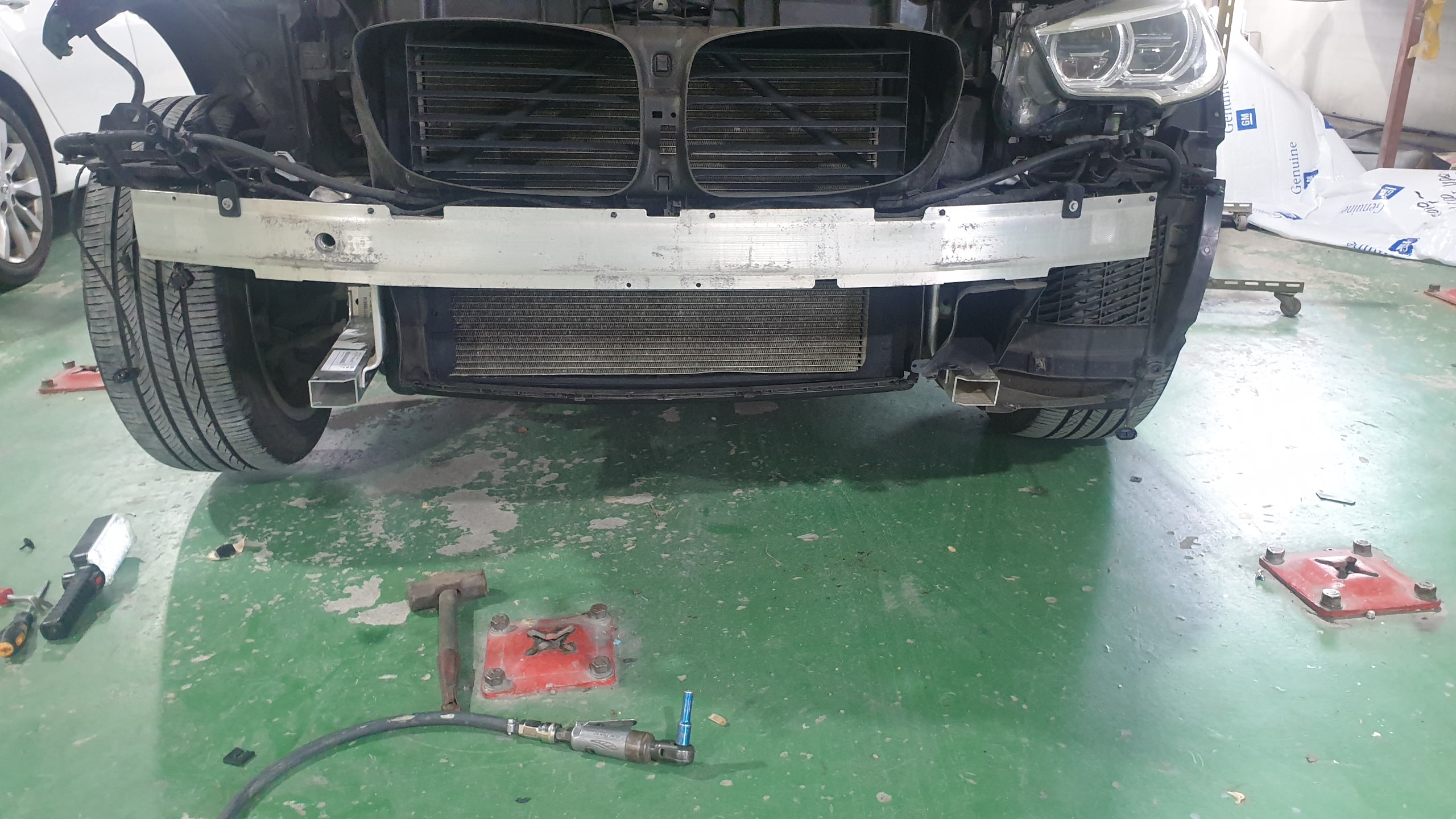 인천 수입차 범퍼교환, 판금도색 작업 중