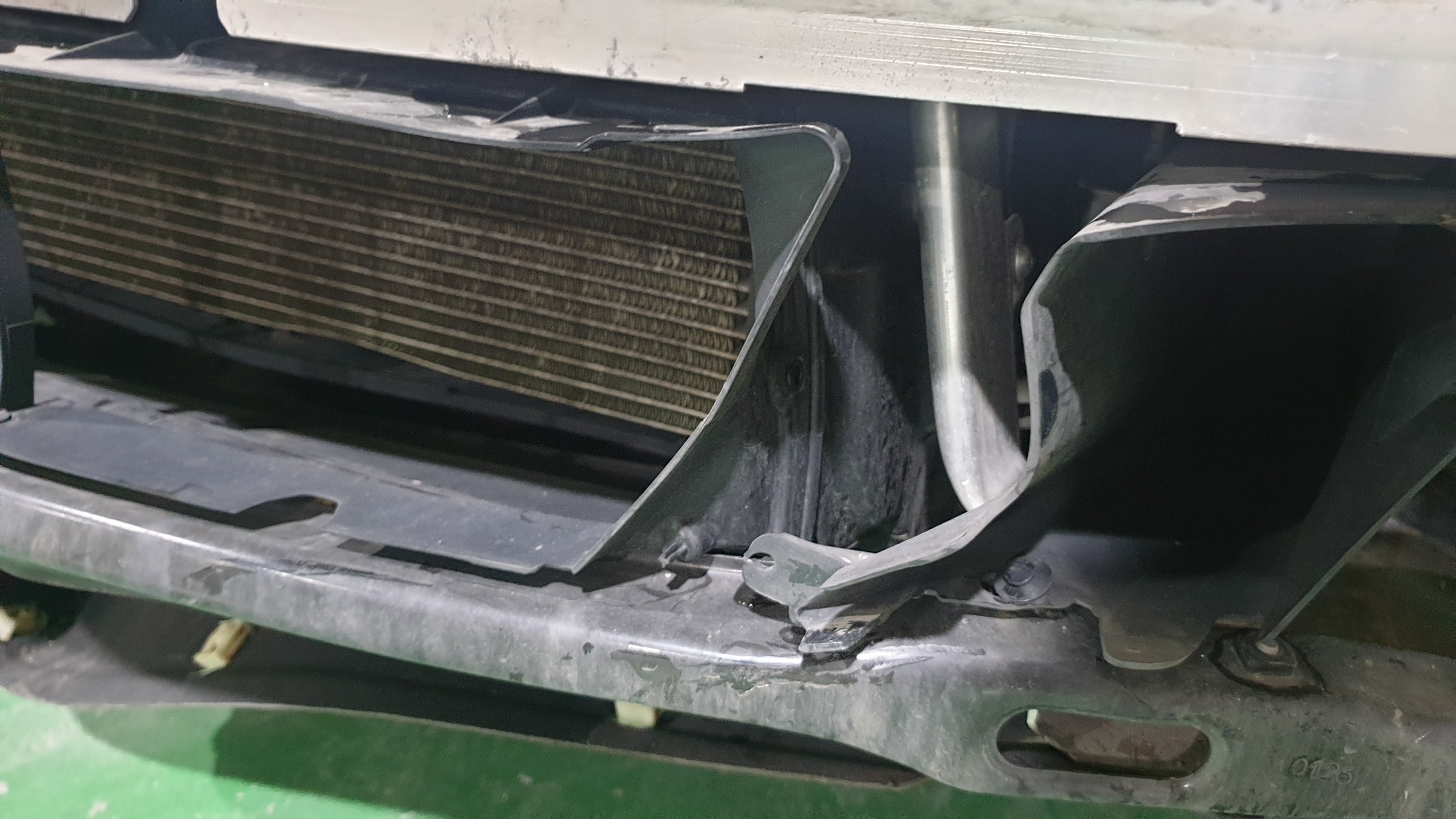 앞 범퍼 하단이 밀려 들어가니 자연스럽게 상단부분이 벌어지게 되었습니다.