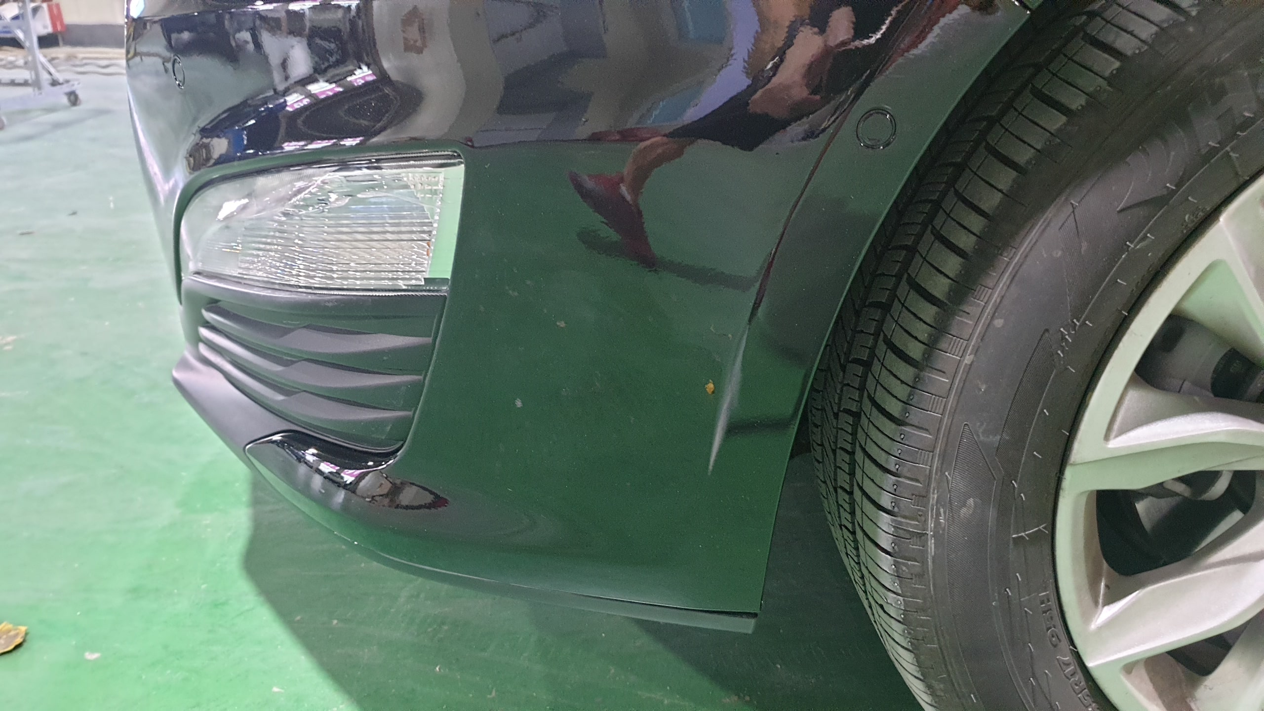 조수석 쪽 범퍼 부분은 깨끗한 상태이기 때문에 운전석 부분만 부분도색으로 복원하였습니다.
