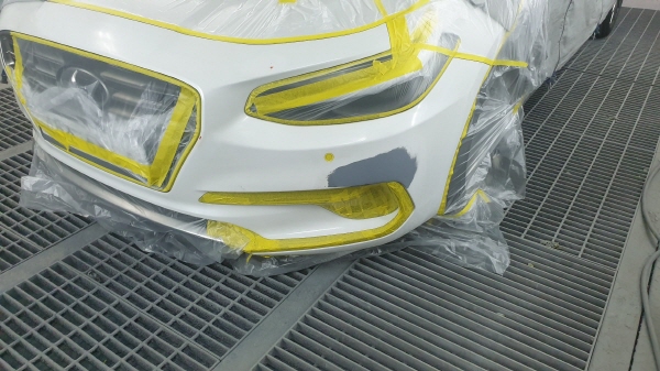 범퍼 부분도색 작업 중