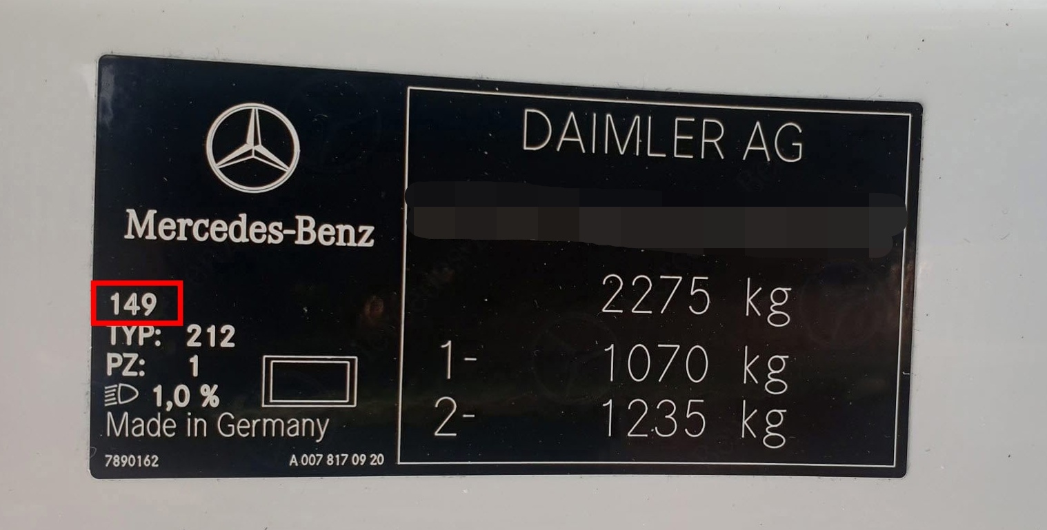 벤츠 차종 색상코드는 조수석쪽 앞문 센터 필러에 붙어 있습니다.