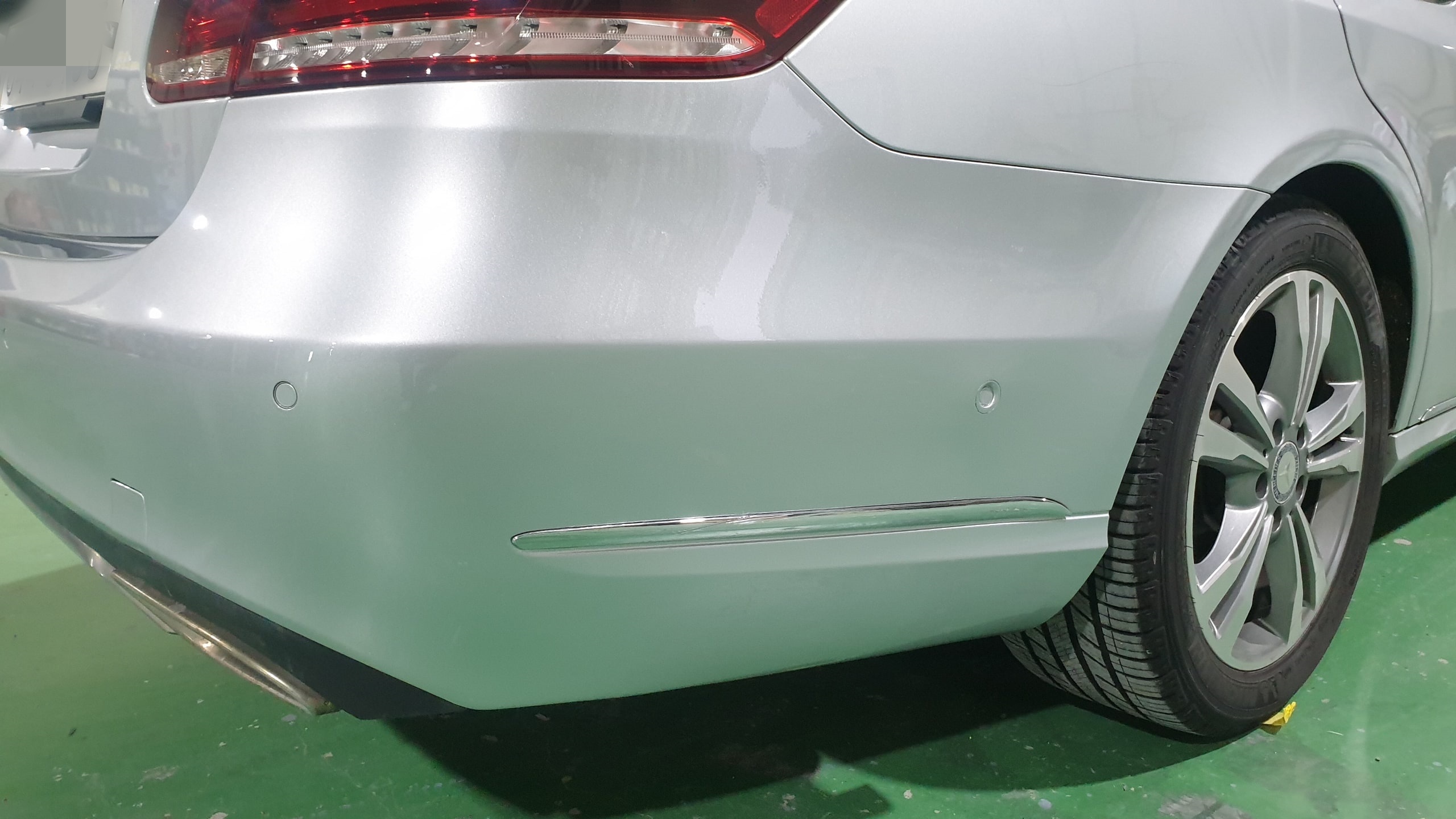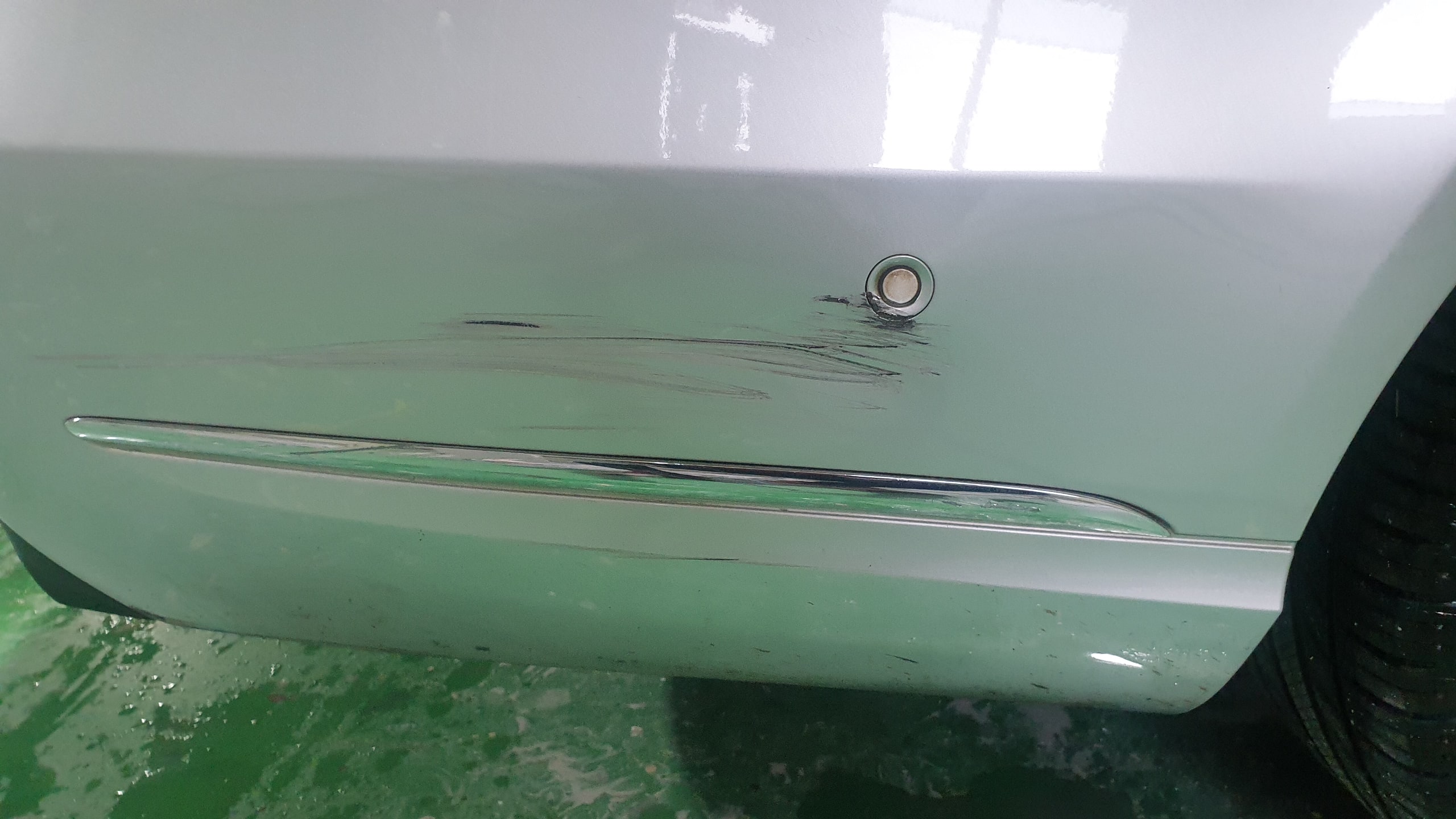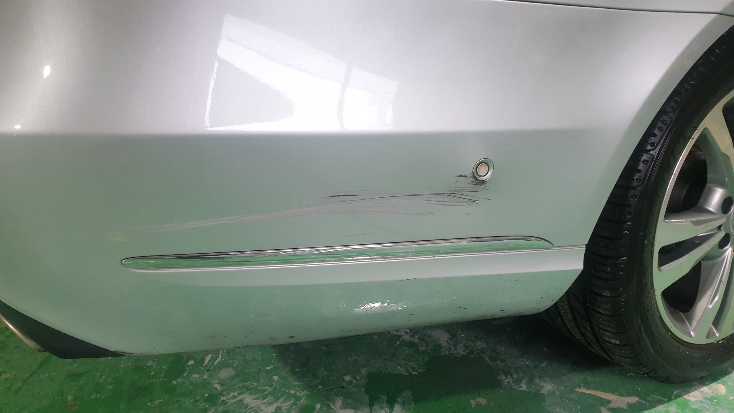 벤츠 E220 뒤 범퍼도색, 자동차 스크레치 복원, 주차중 긁힘 수리