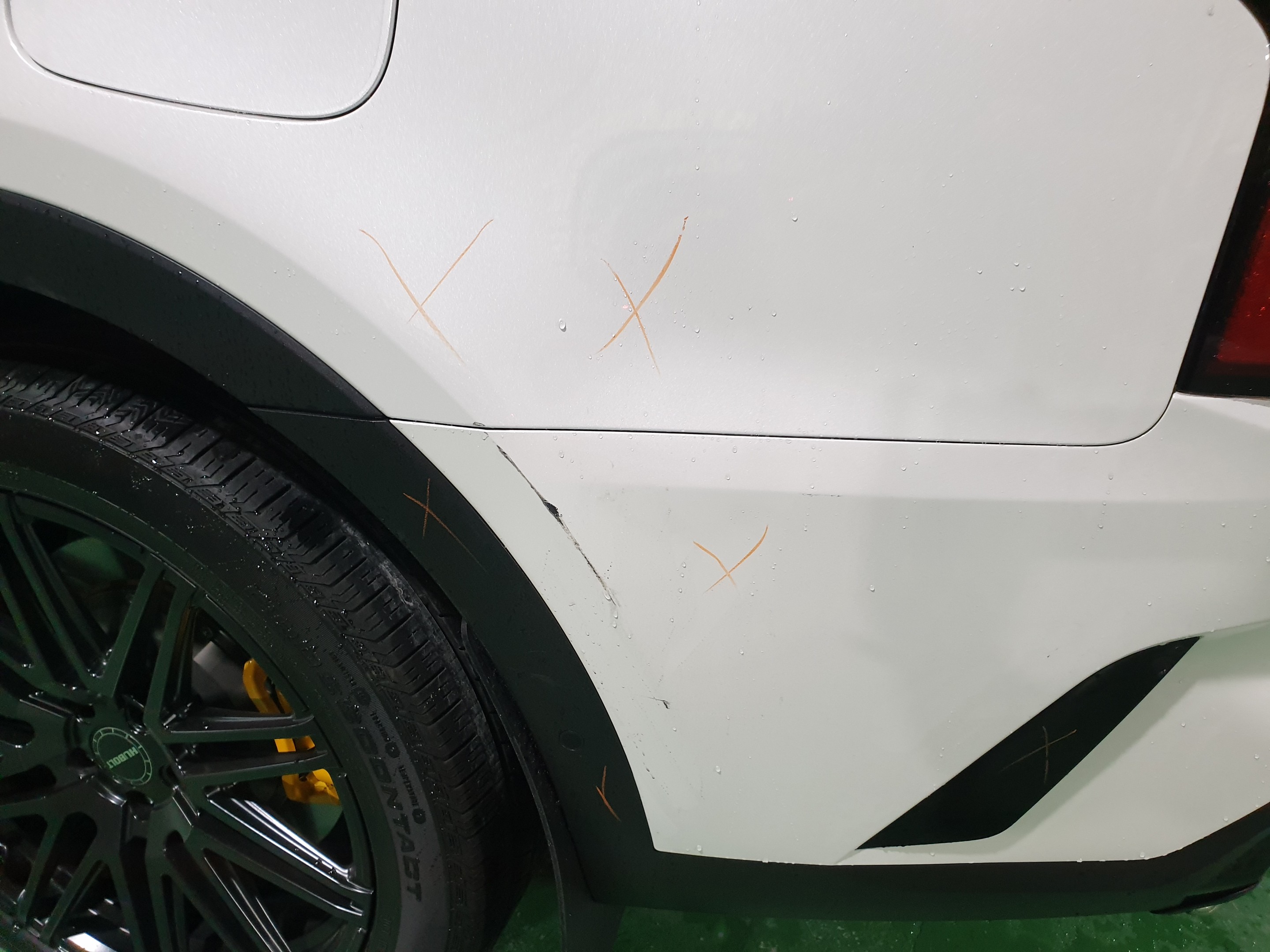 뒤 펜더는 아주 살짝 까졌지만 살짝 들어가서 퍼티 작업을 해 주었습니다.