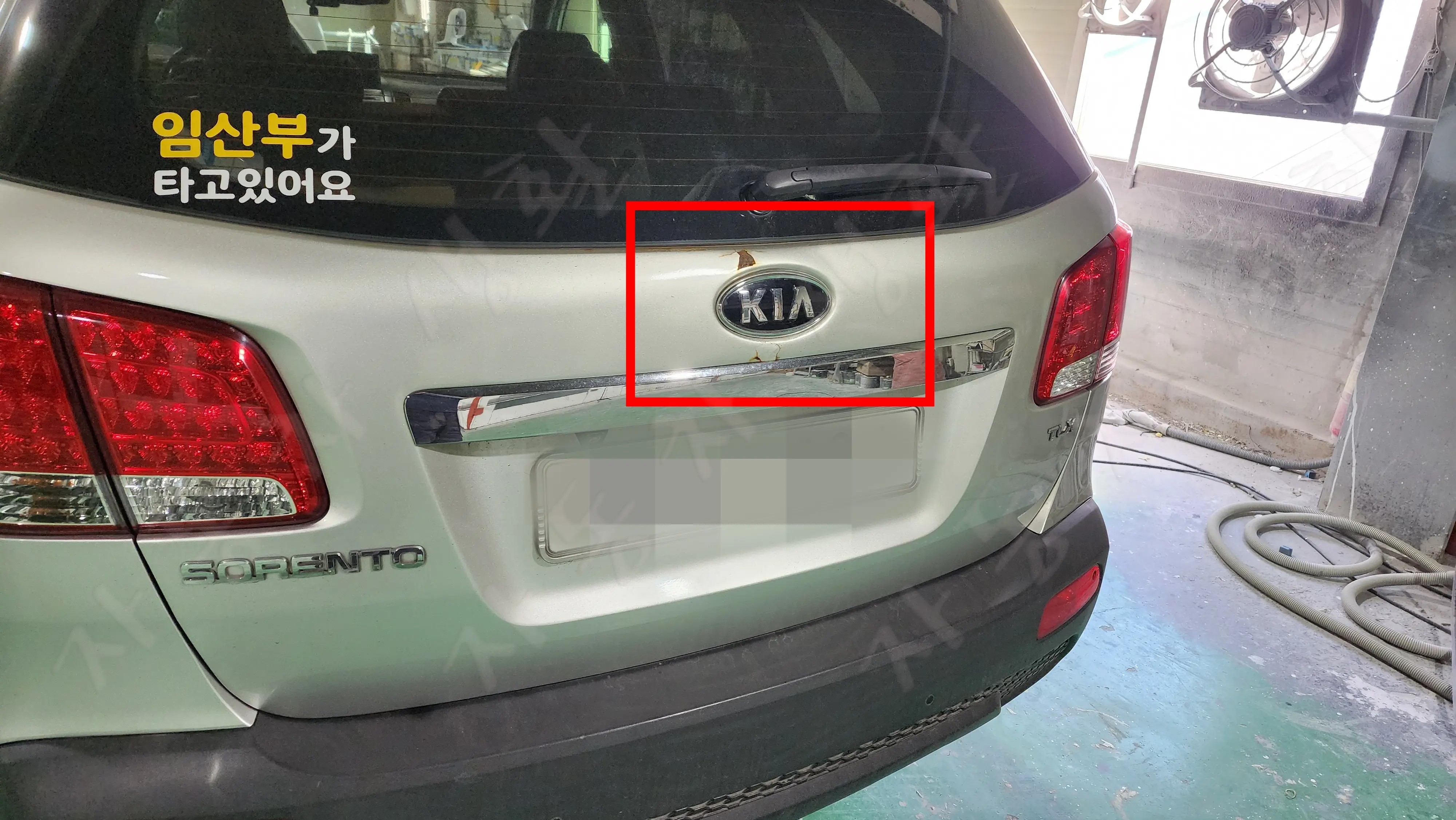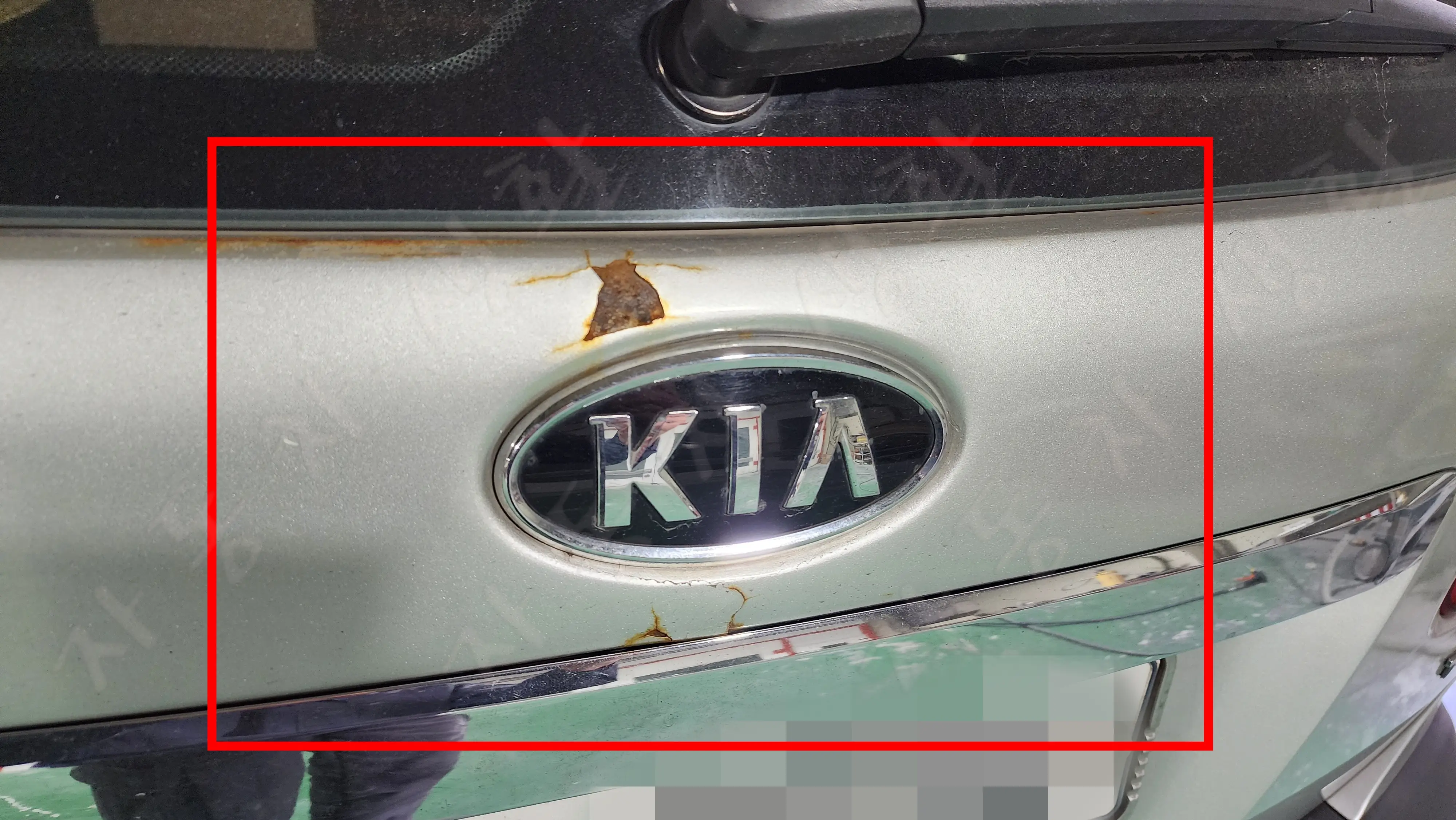 기아 마크 위, 아래로 녹이 치고 올라오면서 도장이 깨졌습니다.