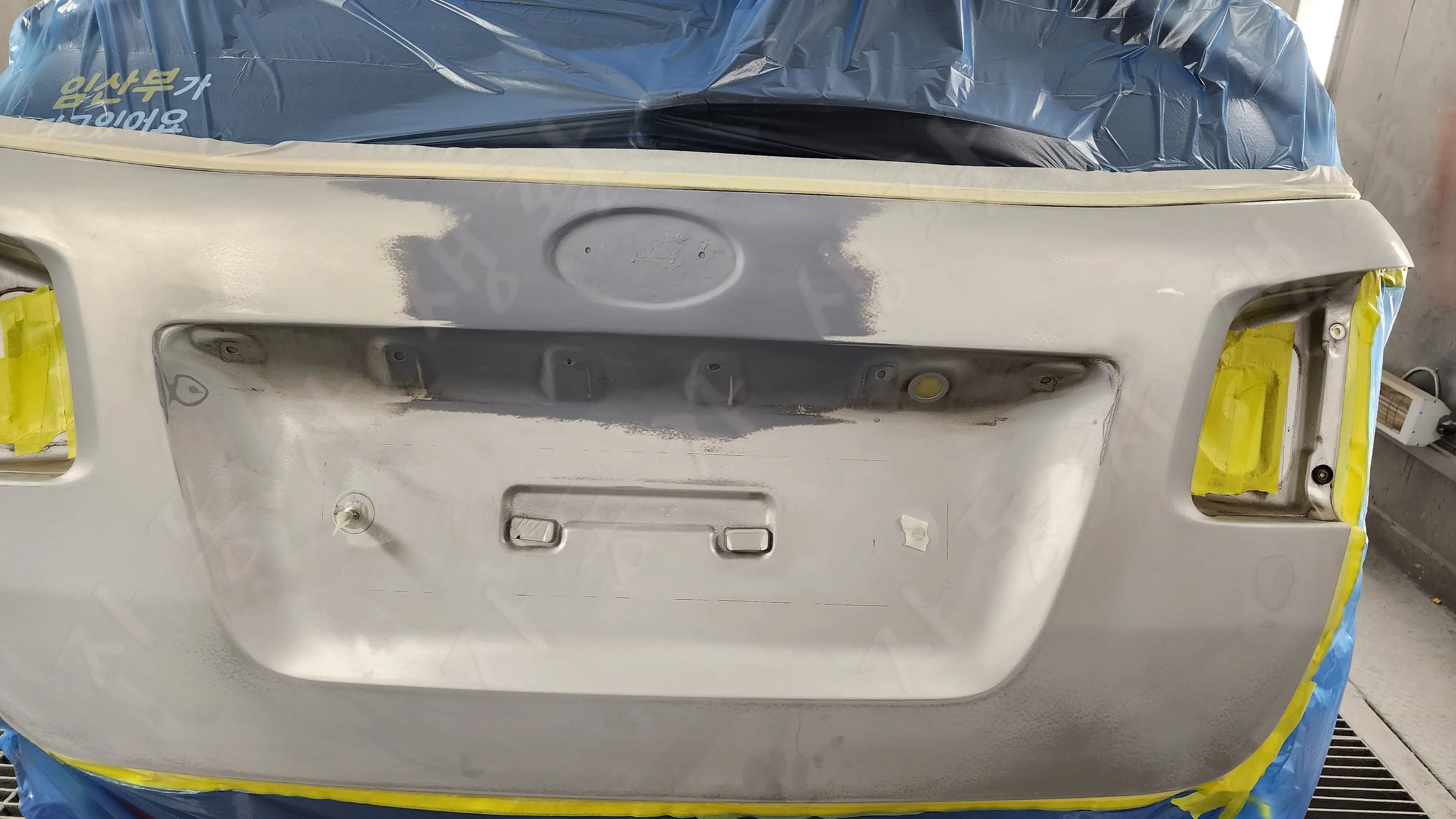FRP로 모양을 다시 만들어 주려고 했으만 마크 부분의 모양을 만들기가 어려워 그냥 퍼티로만 작업을 진행하였습니다.