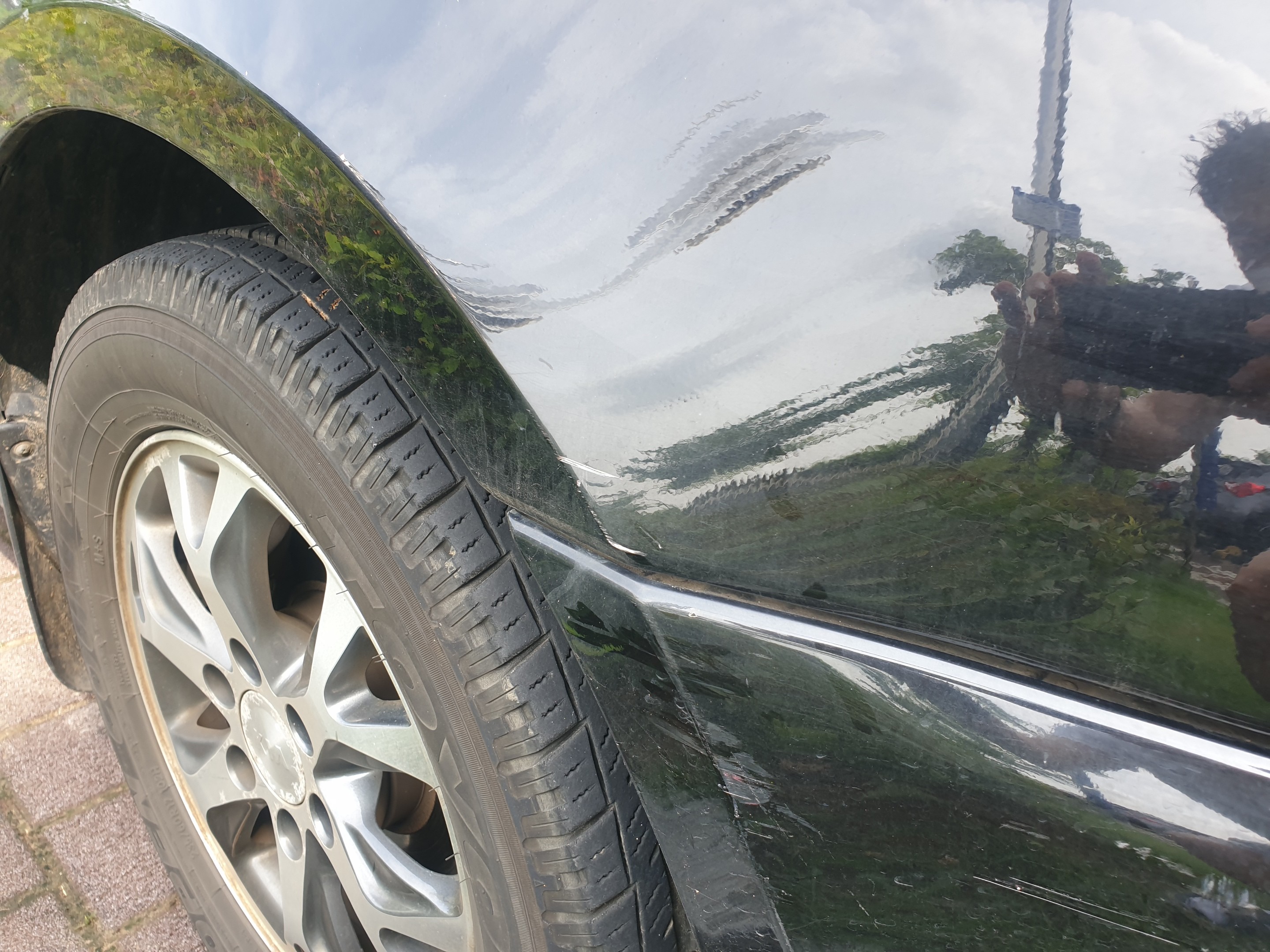 펜더 옆쪽으로 가늘고 길게 스크래치가 생겼습니다.