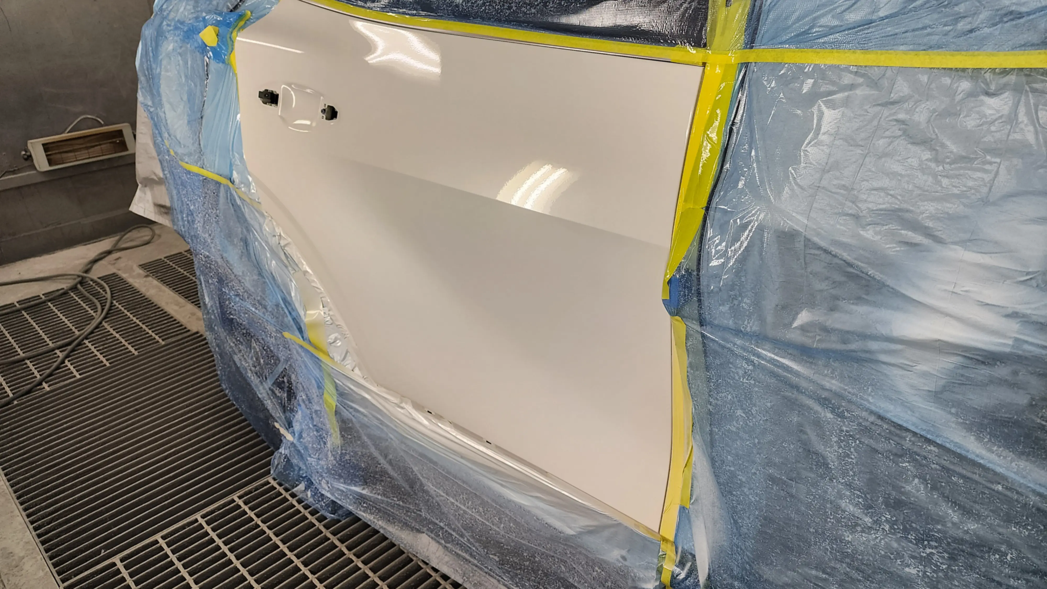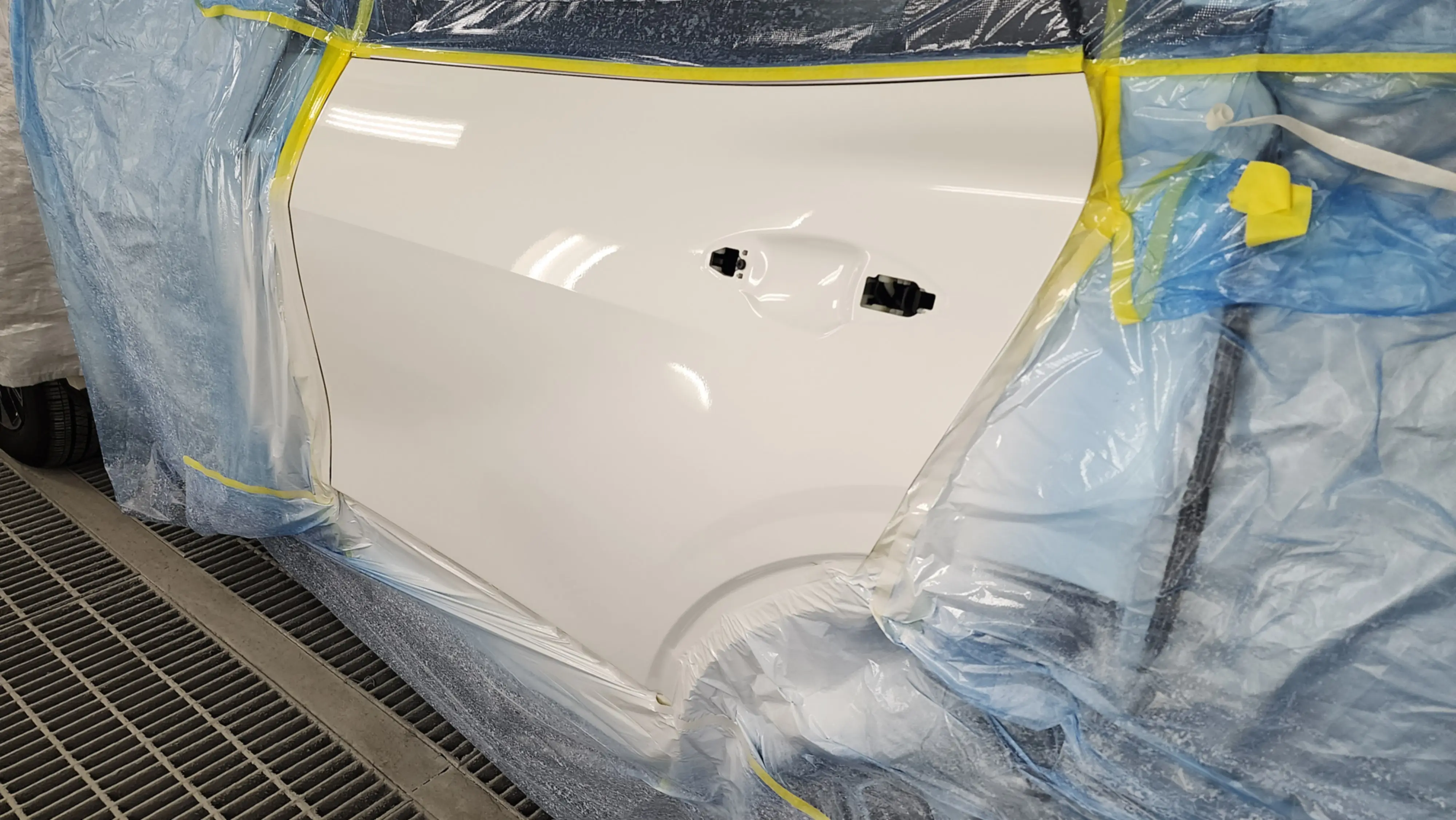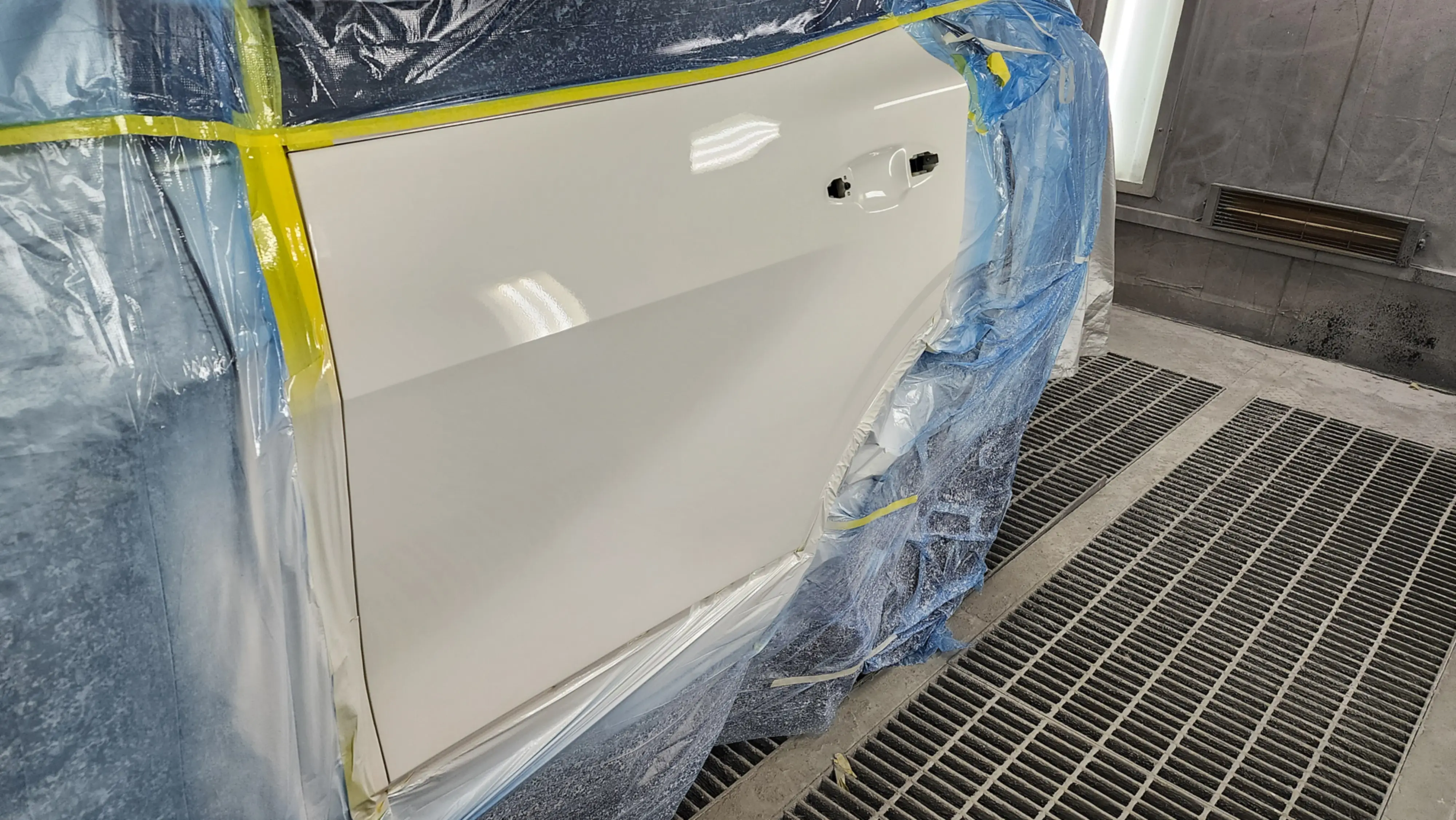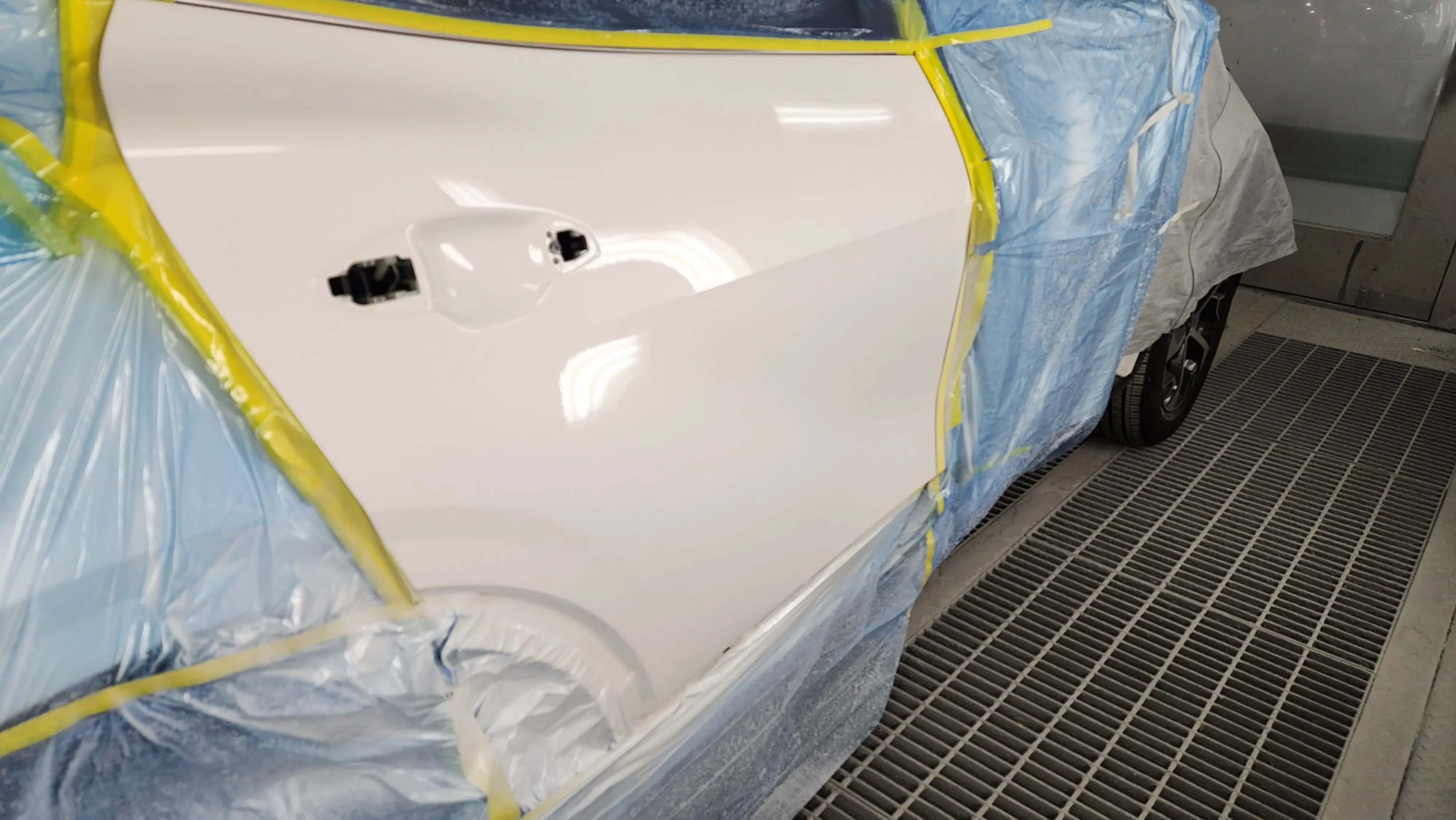 해당 차량 색상인 스노우 화이트 펄은 밝은 베이스에 진주 펄 입자가 혼합되어 페인트 분사 각도, 레이어 수, 클리어 타이밍까지 모든 과정이 섬세해야 자연스러운 색상 구현이 가능합니다.