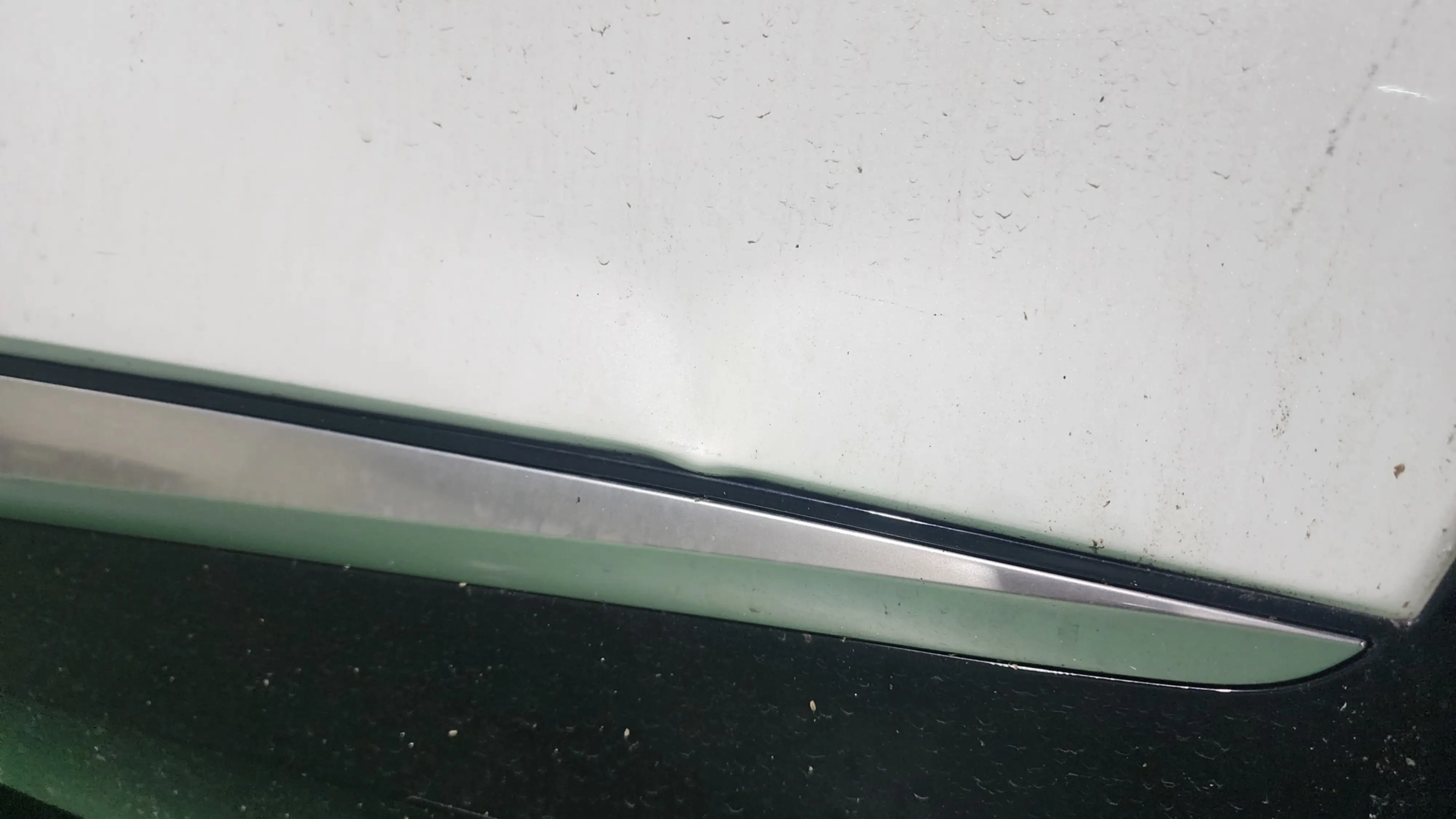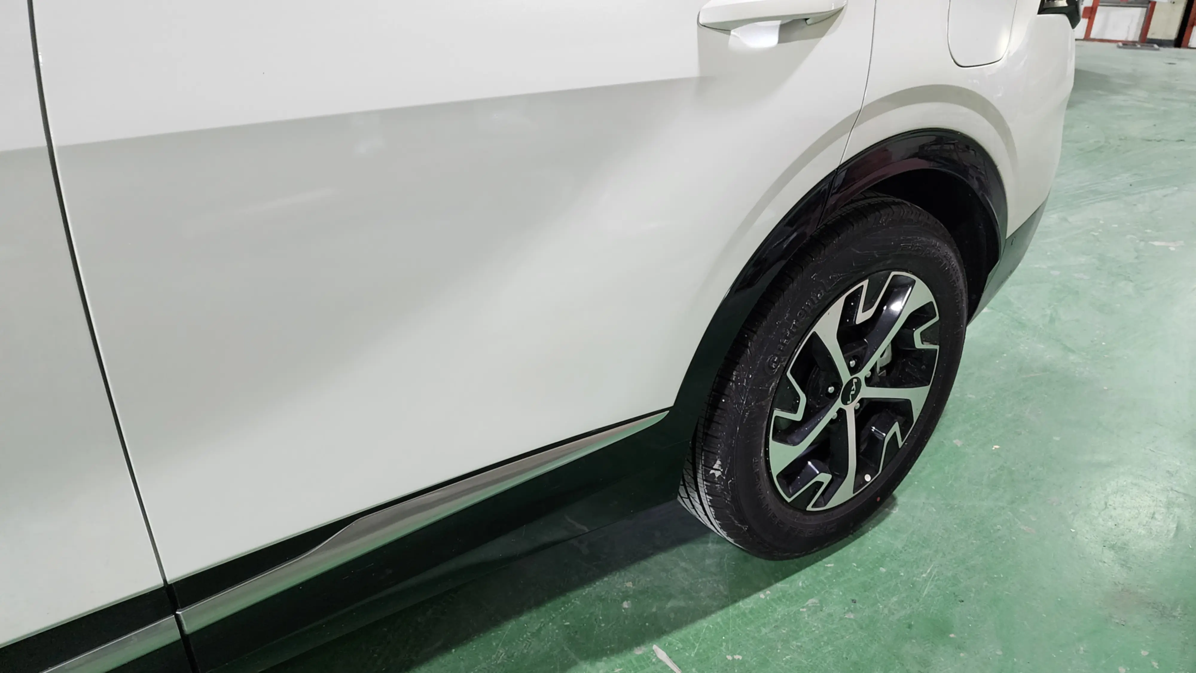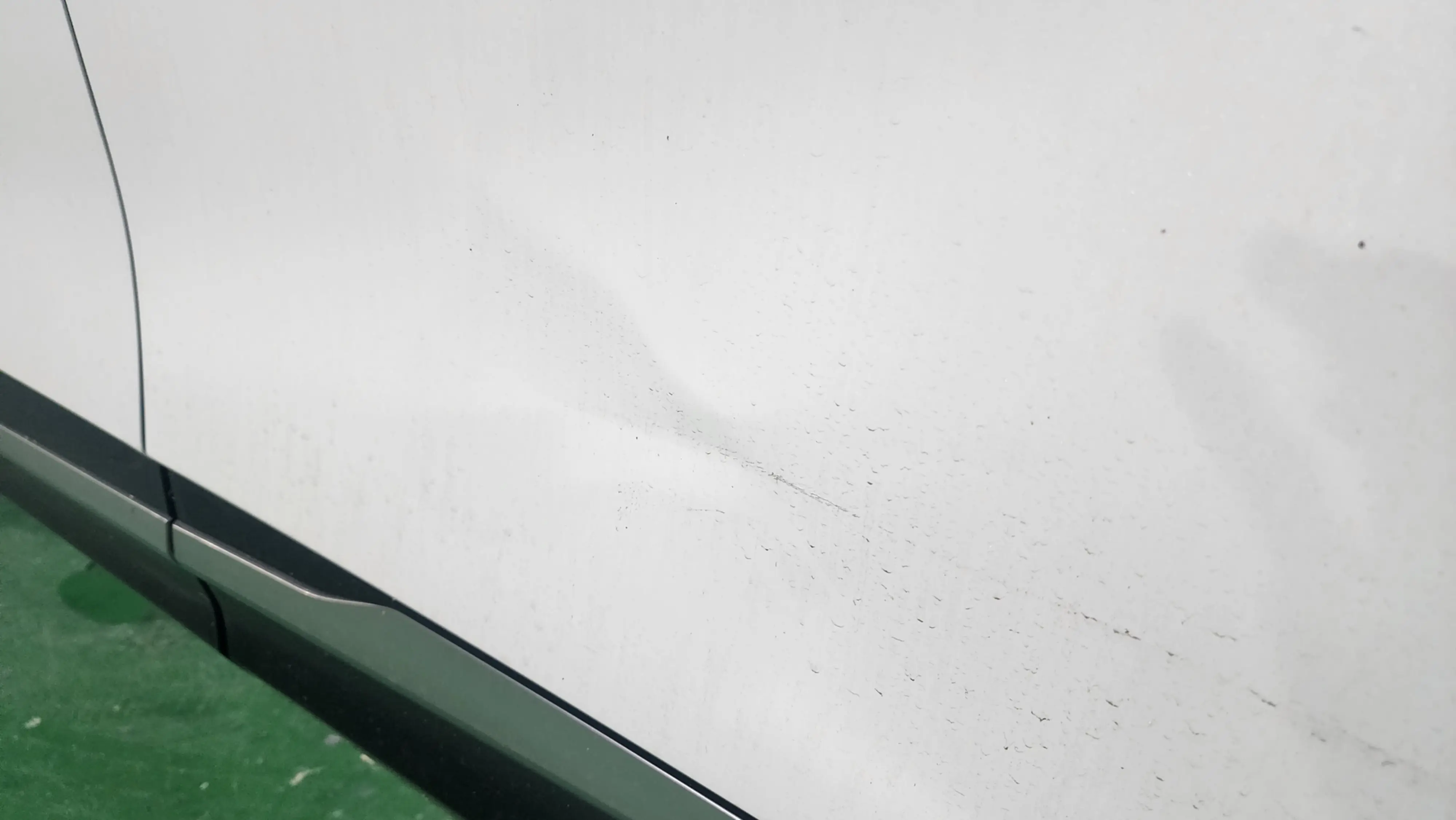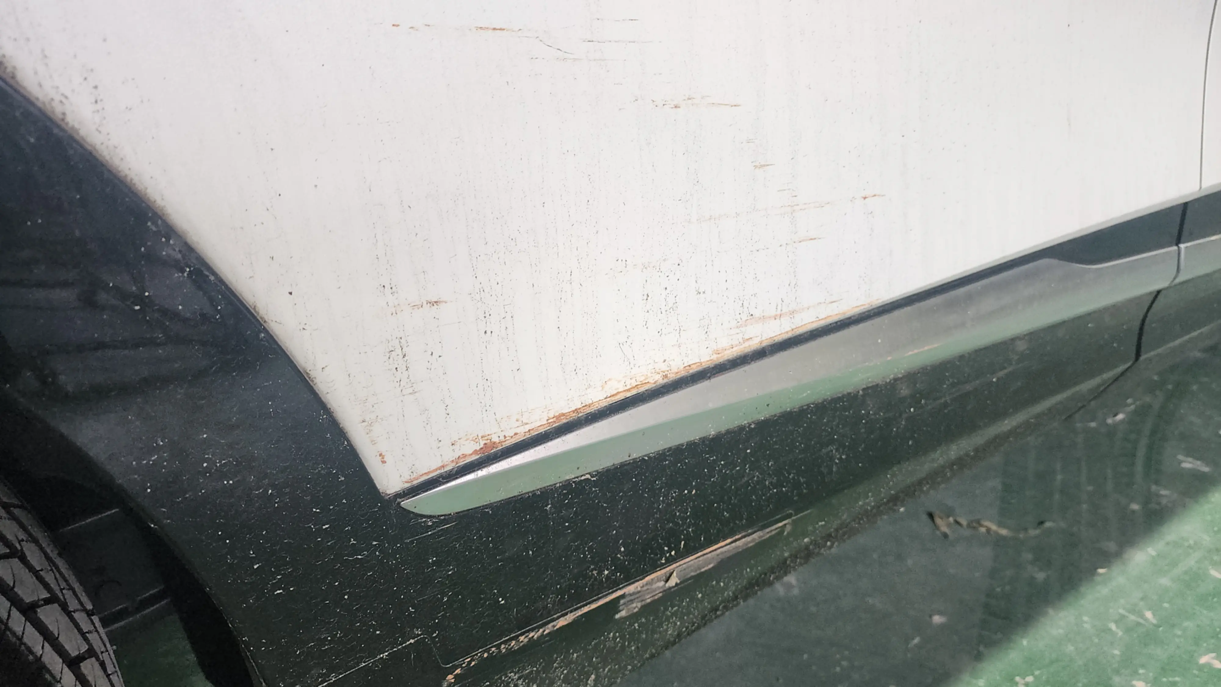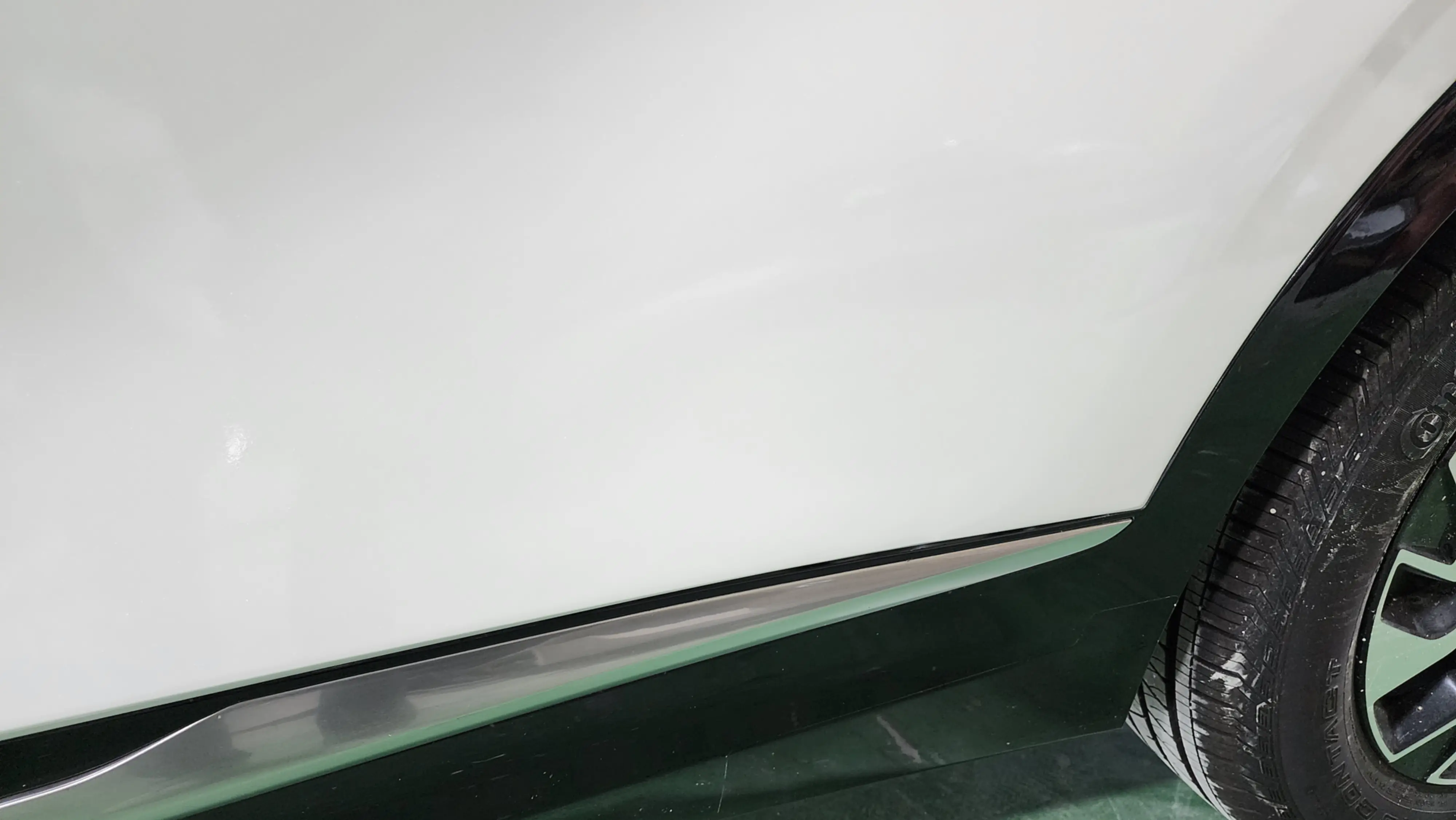 스노우 화이트 펄(SWP)이라는 밝은 펄 계열 색상을 가진 차량으로, 운전석과 조수석의 뒷문 하단에 눌림과 스크래치가 함께 발생한 상황이었습니다. 차량 하단에 위치한 블랙 가니쉬에도 손상이 있었고요.