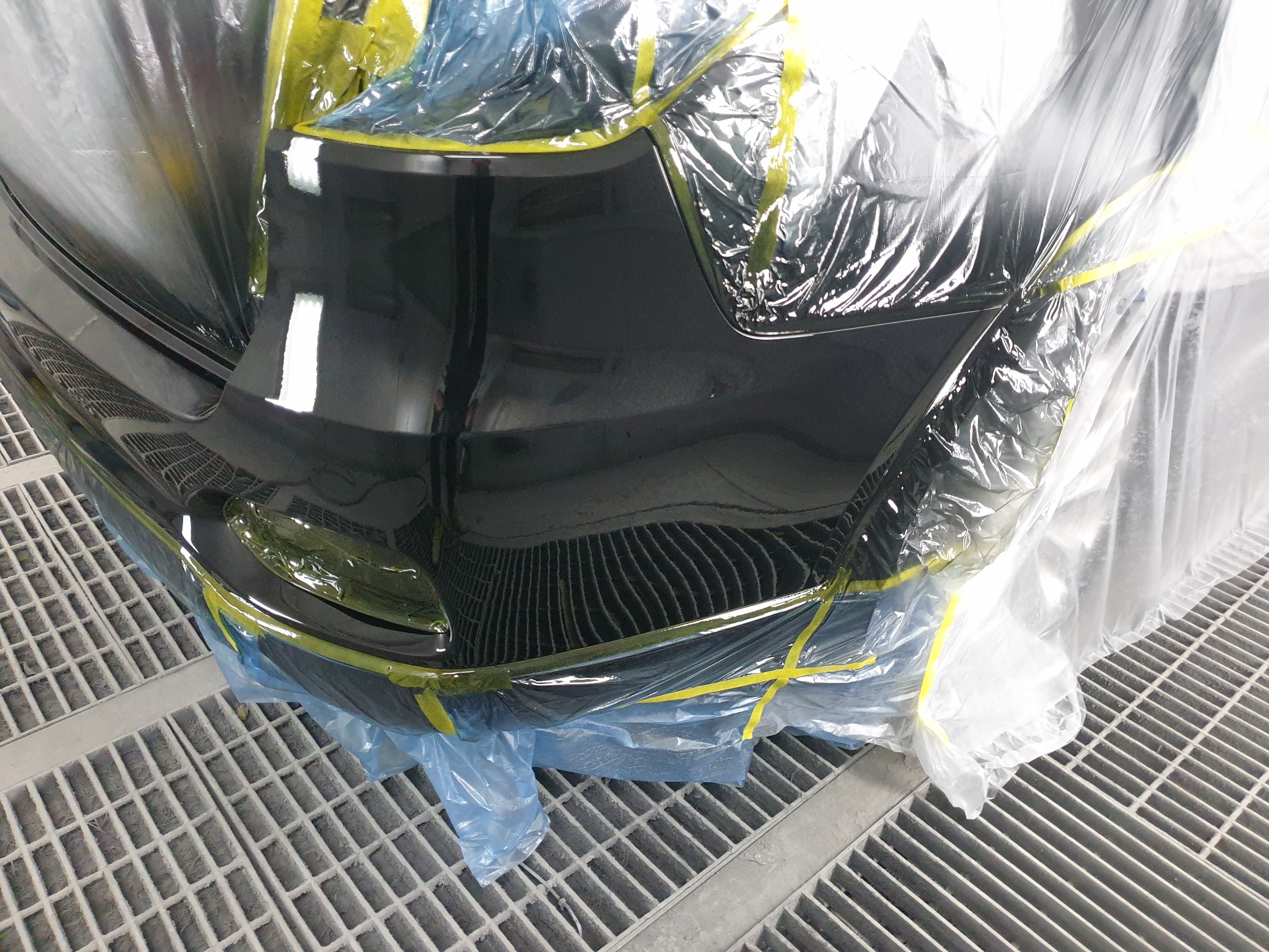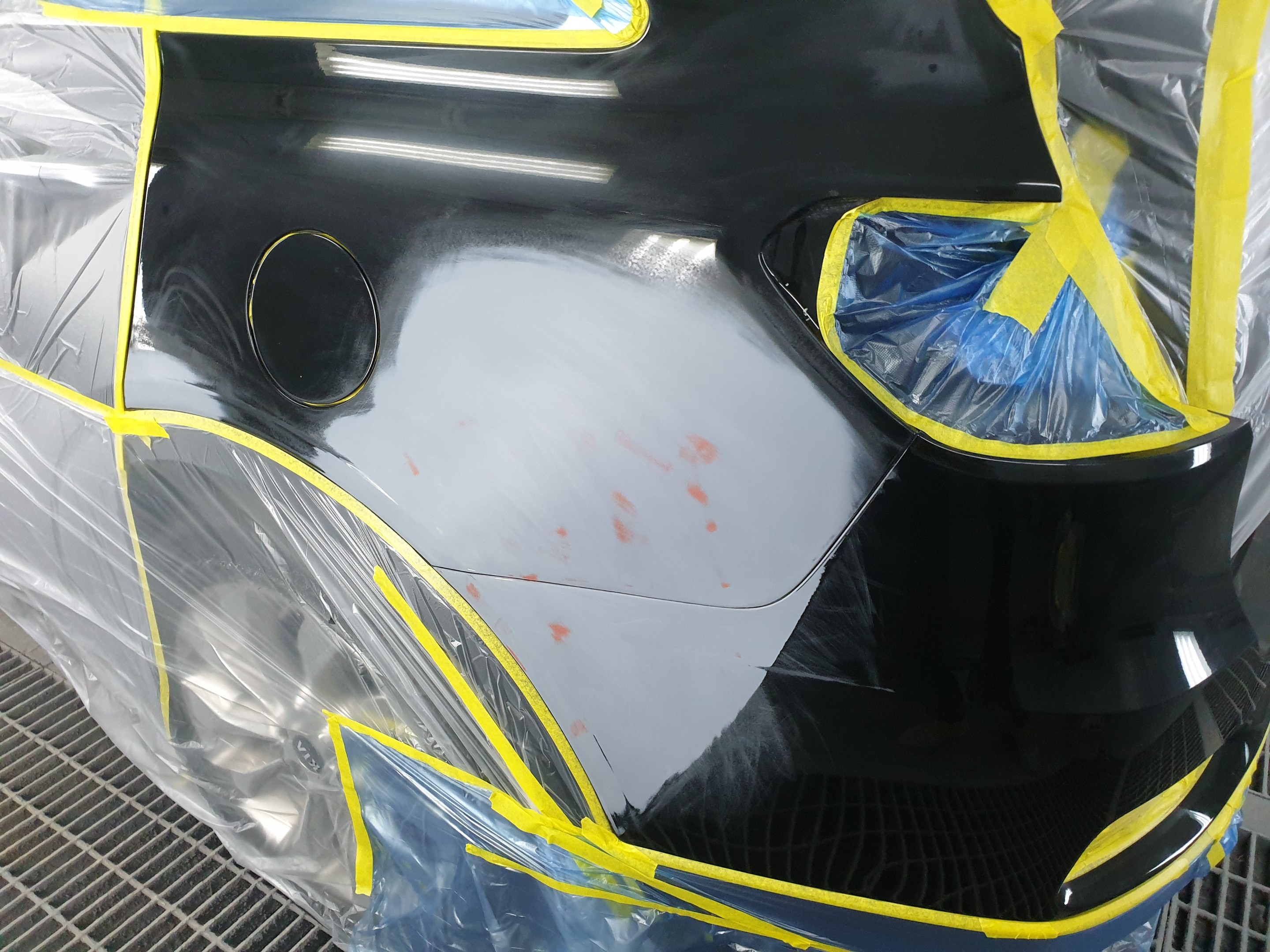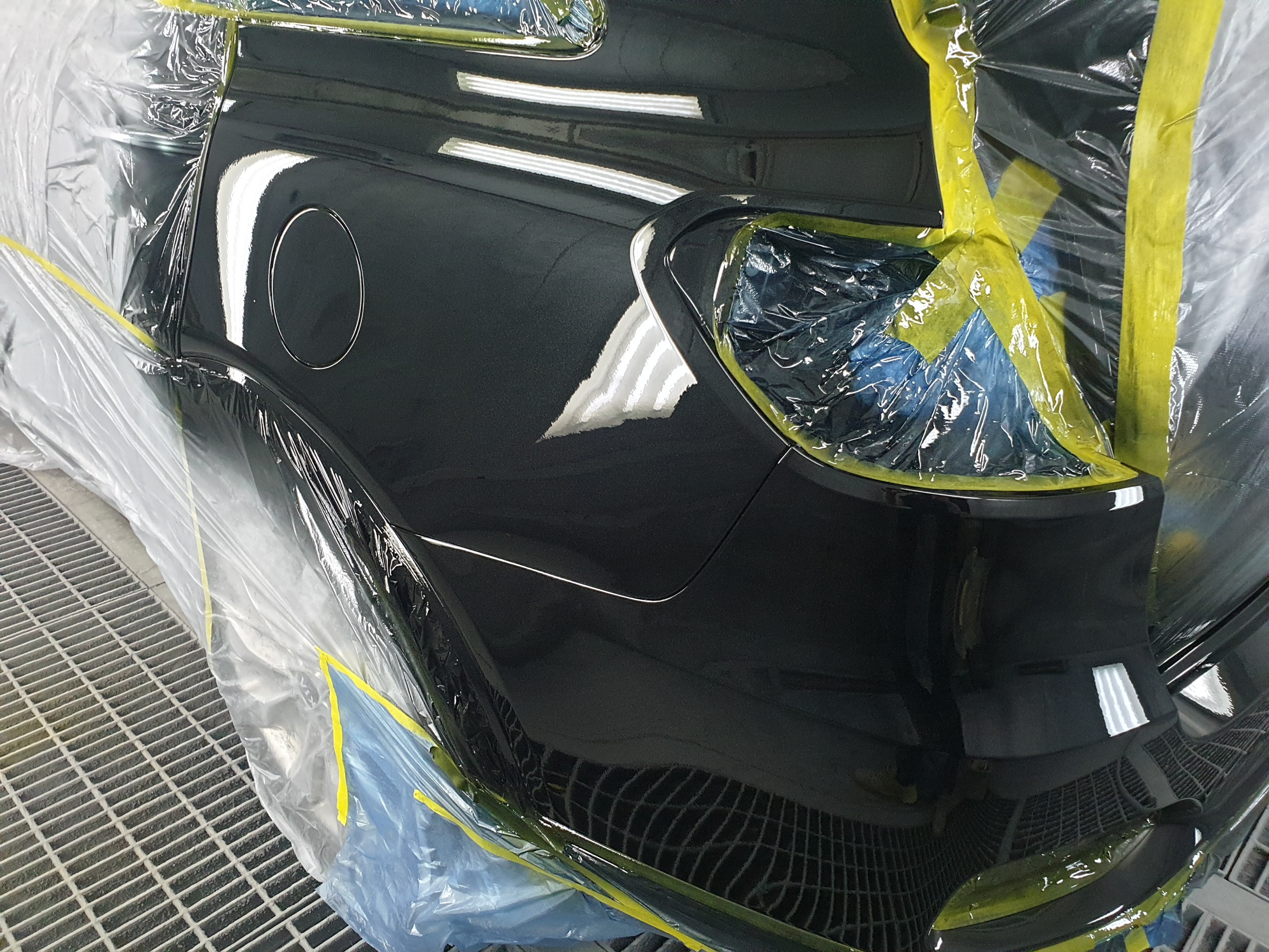 휀다 판금도색, 범퍼 복원이 완료되었습니다. 범퍼가 붙어 있는 상태에서 모양을 만들었기 때문에 단차가 잘 맞고 있습니다.
