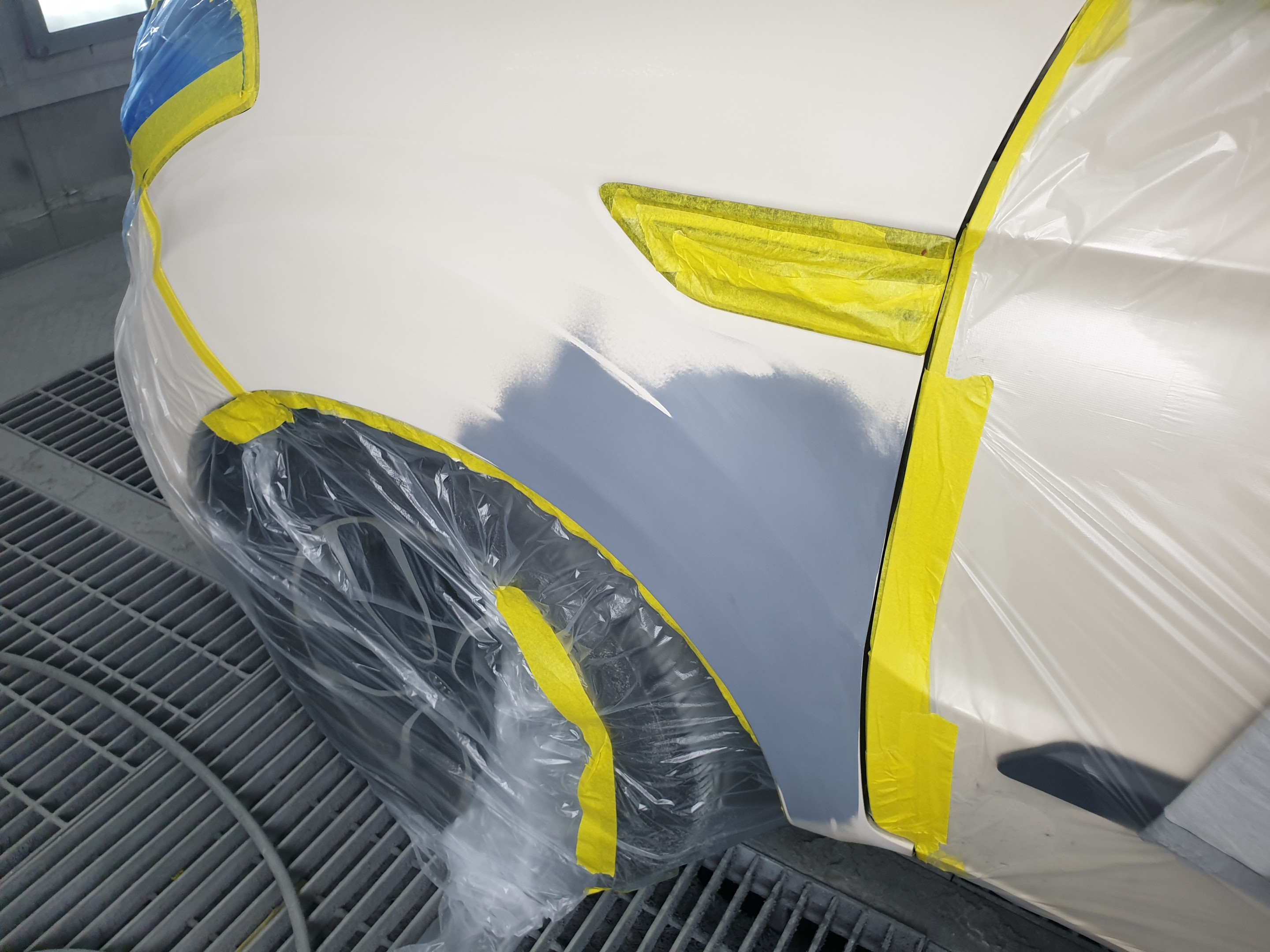 찌그러진 곳 펴고 퍼티로 각 라인 살린 후 서페이서까지 도포하였습니다.