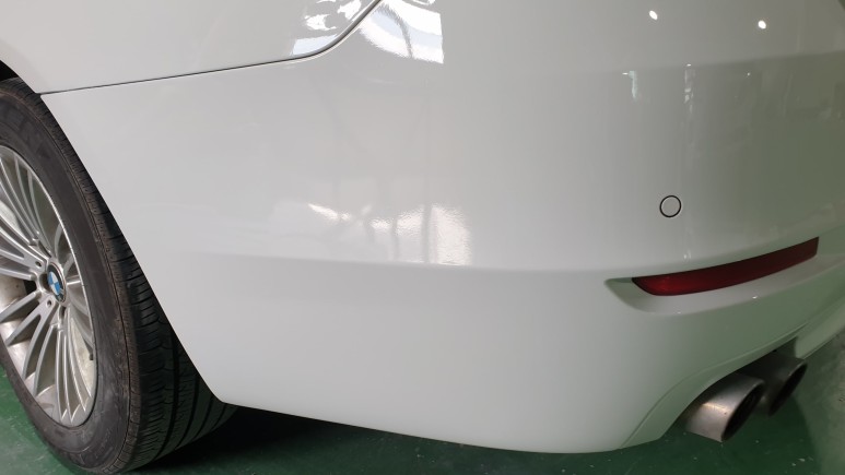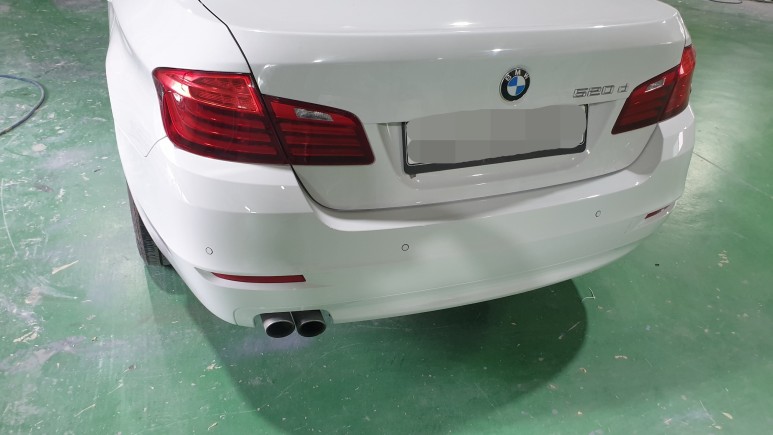"BMW 520D 뒤 범퍼도색, 뒤 펜더 판금도색 작업 완료"