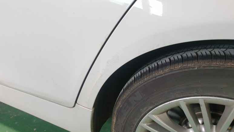 범퍼 도색하는 김에 운전석 뒤 휀다 판금도색도 같이 하기로 하였습니다.