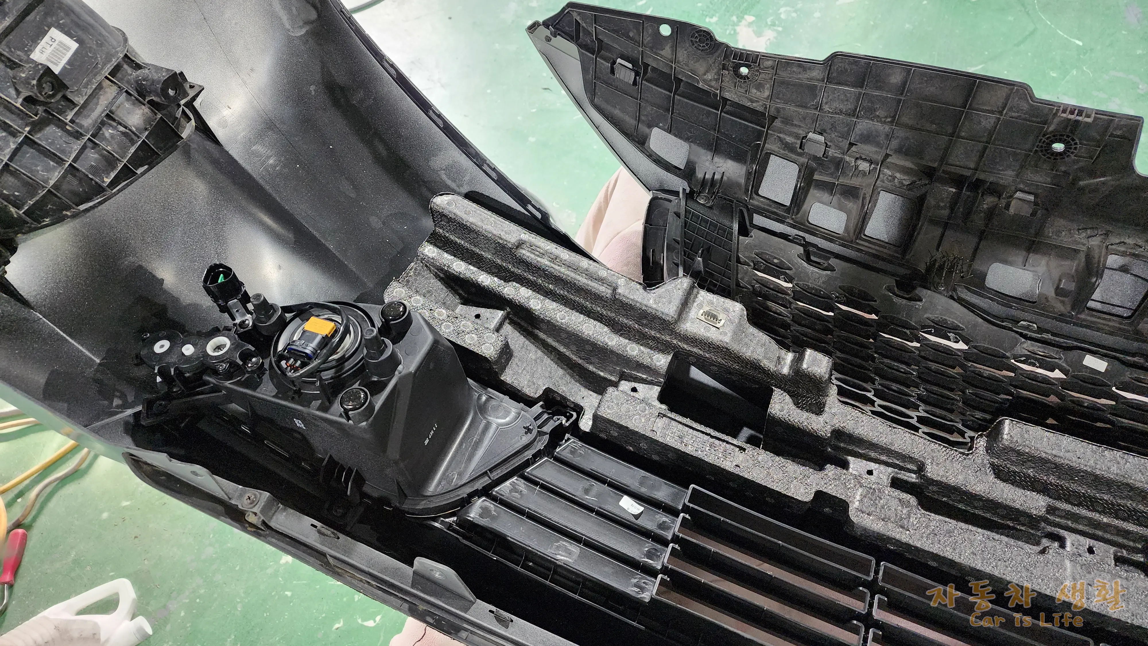 고급 수입차의 경우 범퍼 안쪽에 수많은 고정 부착물들이 감춰져 있습니다. 범퍼 껍데기에 단단하게 고정되어 재사용이 불가한 경우가 많고 부수적으로 들어가는 부품이 많아 범퍼 교환 비용이 많이 올라가게 됩니다.