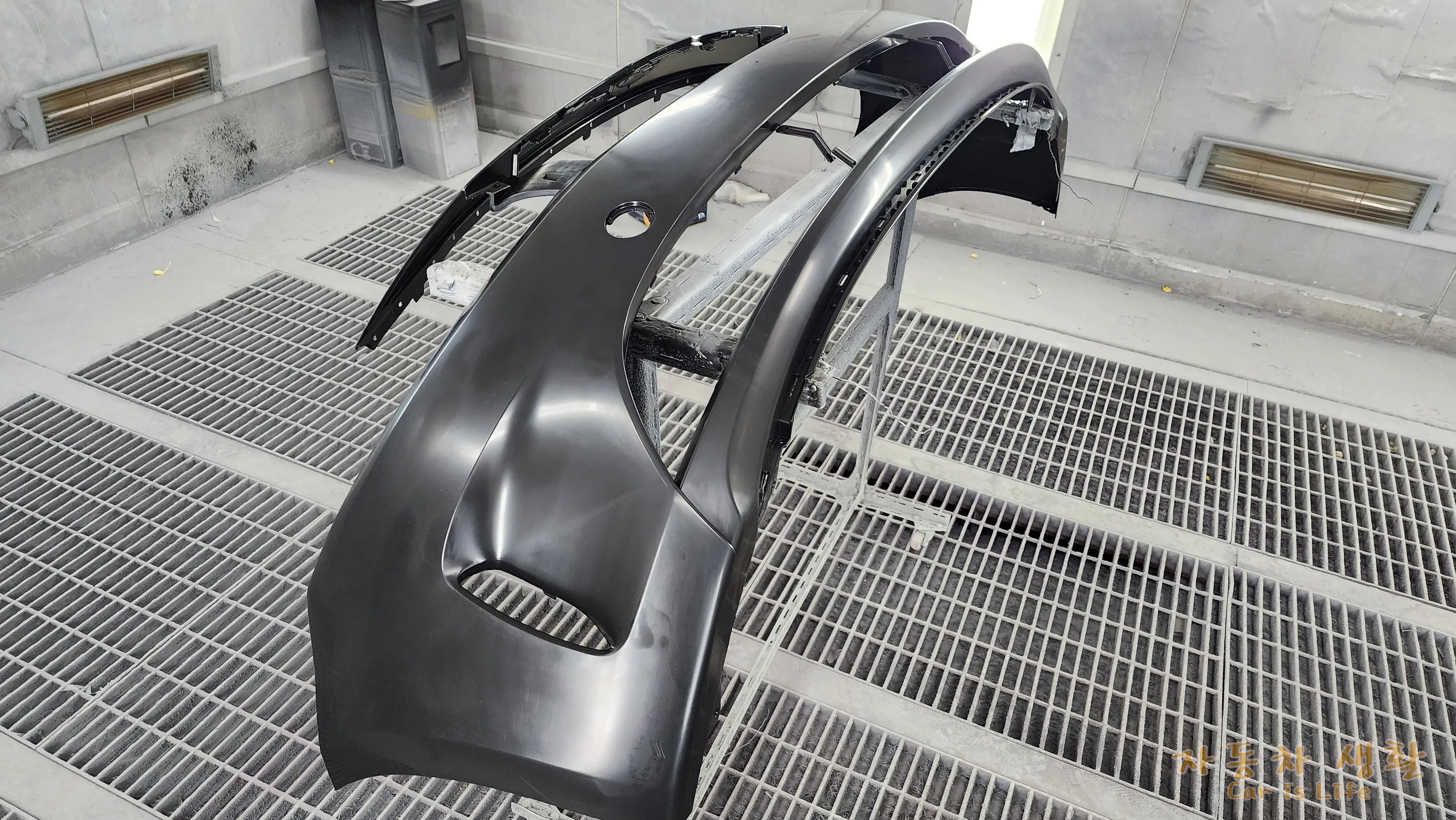 새 범퍼에는 반드시 플라스틱 프라이머를 도색해 줍니다. 범퍼와 페인트의 접착력을 높이기 위해 사용되죠.