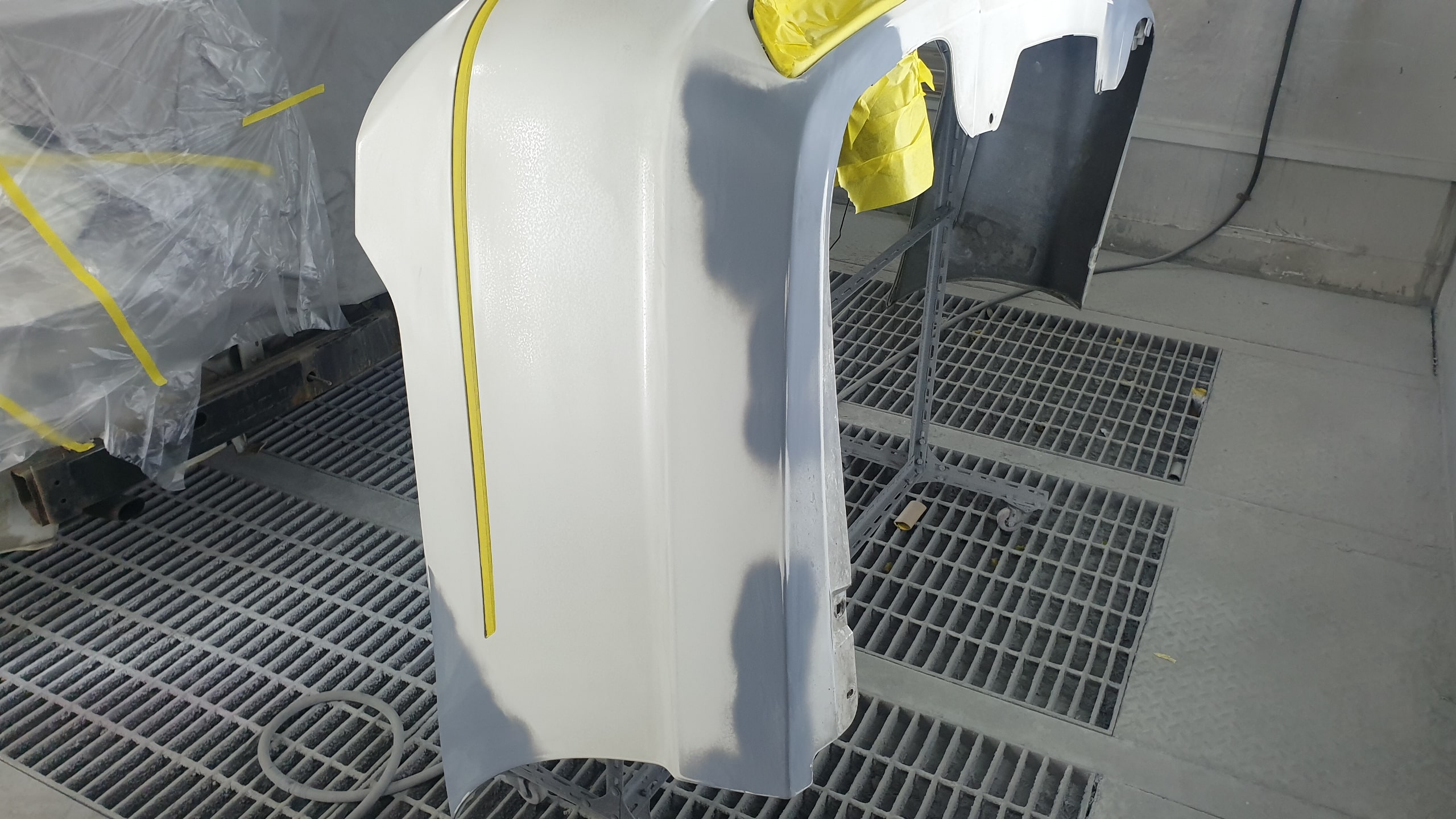 "찢어진 범퍼복원, 펜더 판금도색 작업 완료"
