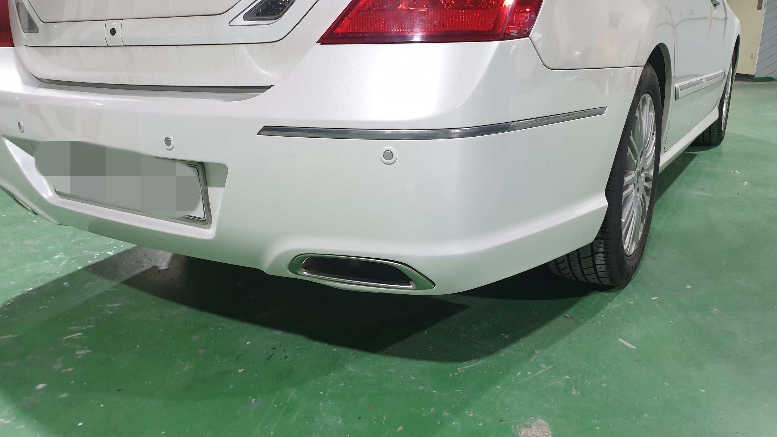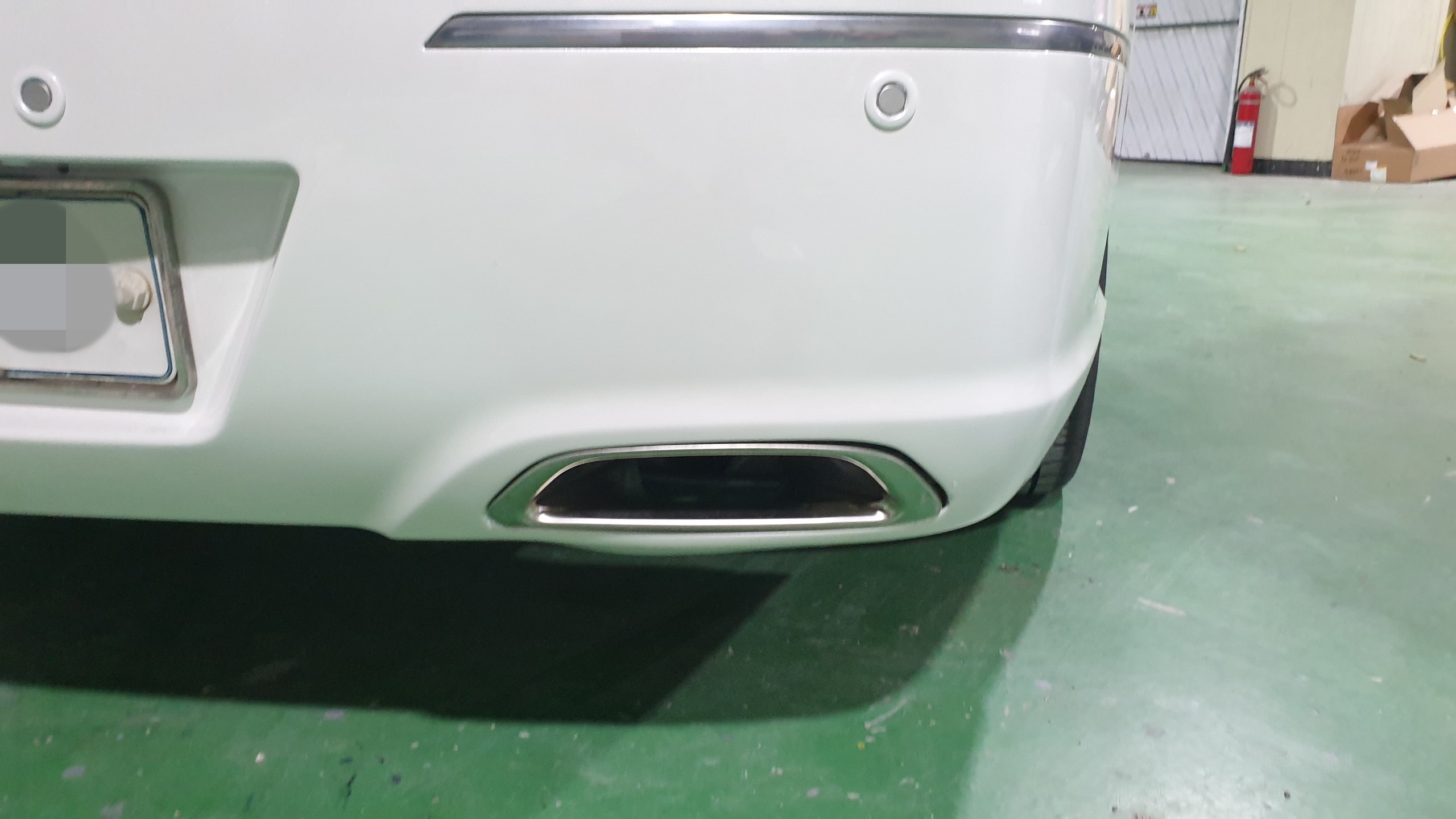 SM7은 머플러팁이 범퍼에 붙어 있습니다. 범퍼 안쪽에서 고정하게 되어있죠.