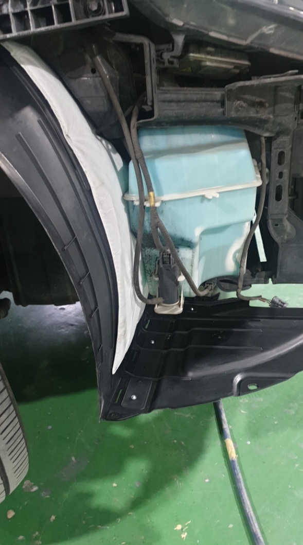 작업내용은 앞 범퍼교환, 양쪽 휠 가이드 교환, 언더커버 교환, 엔진오일 교환입니다.