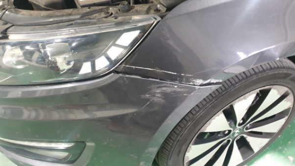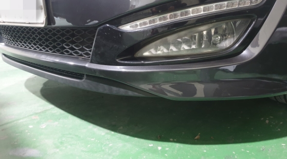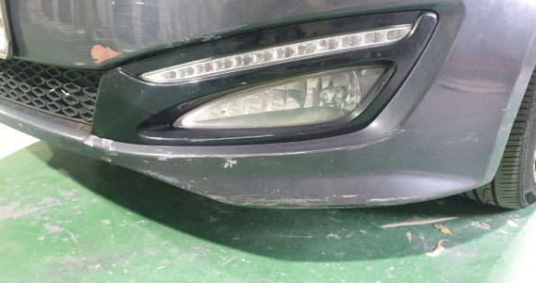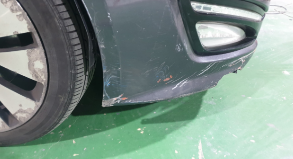 앞 범퍼 부분이 깨지고 찢어져 범퍼복원으로는 불가능하여 범퍼 교환으로 작업 진행하였습니다.