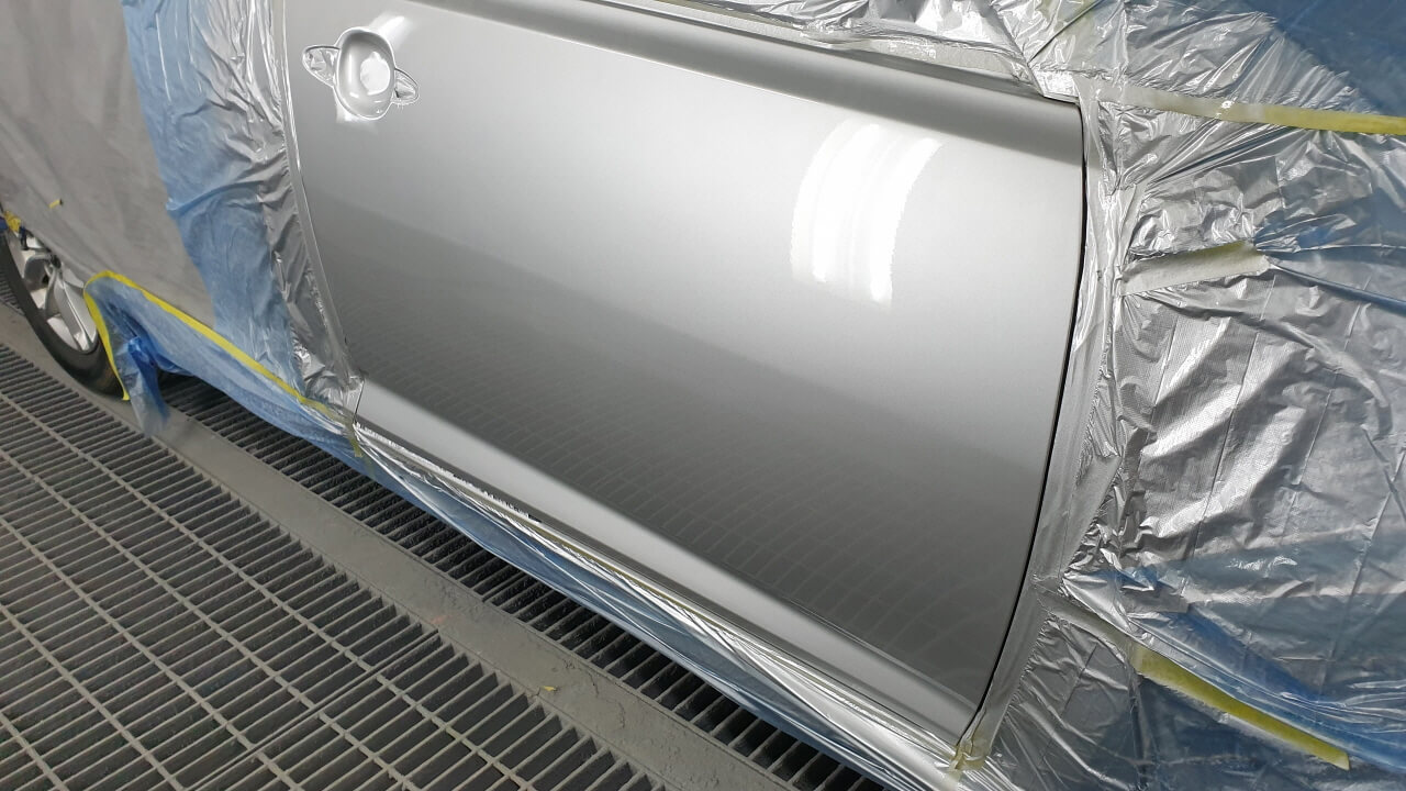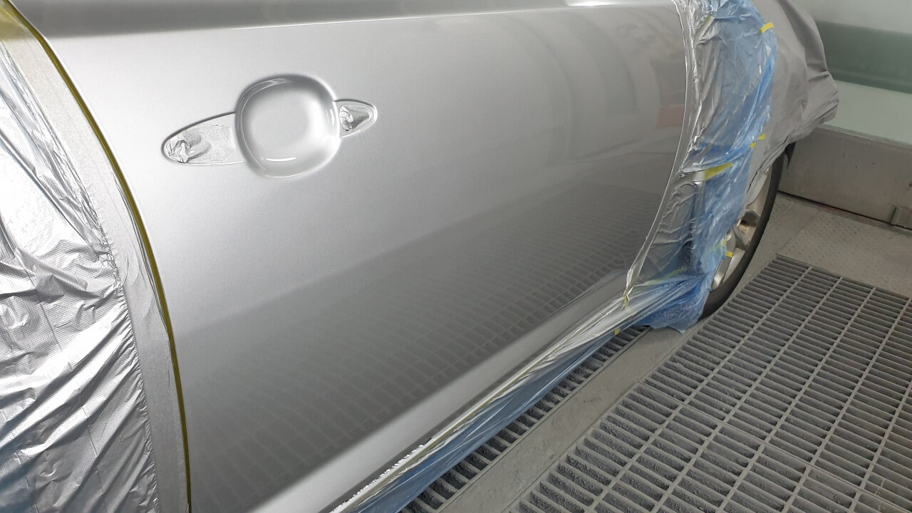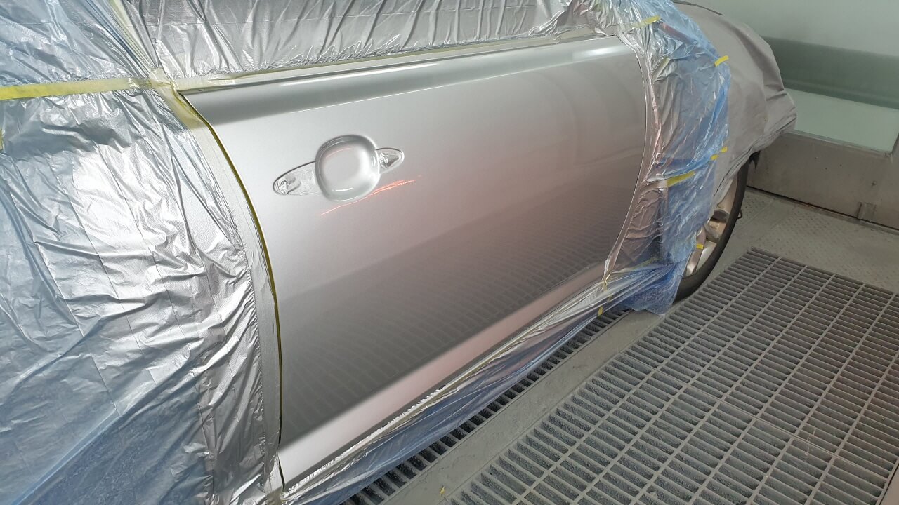 조수석 앞문 판금도색이 끝나고 사이드 미러와 도어캐치를 다시 조립하였습니다.