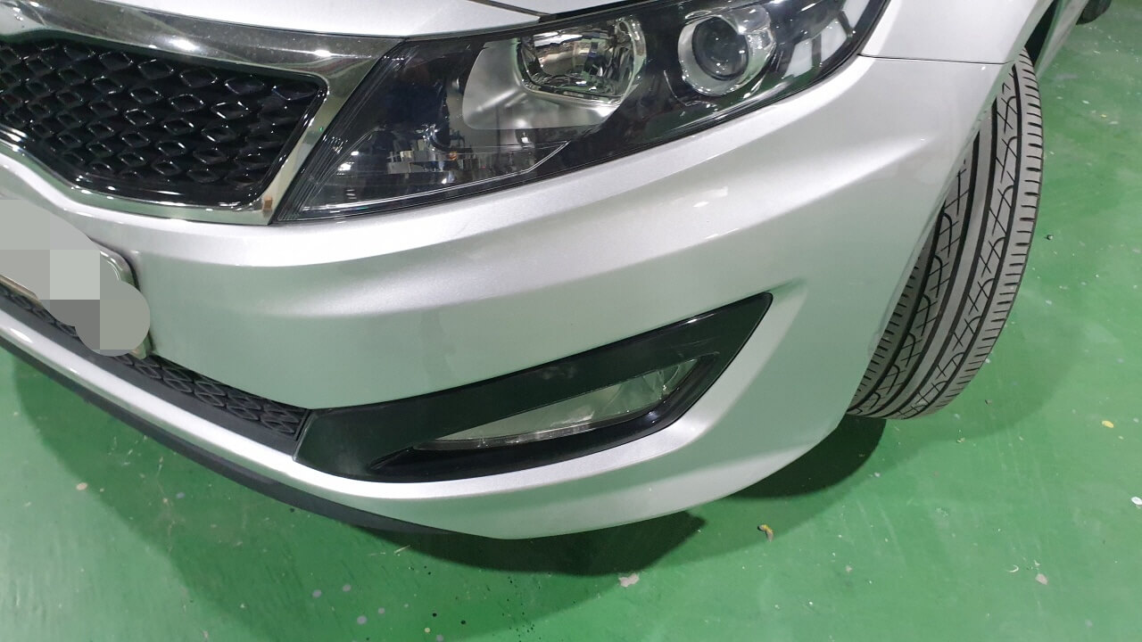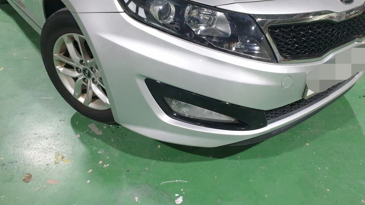 K5 조수석 앞문 판금도색, 찢어지고 패인 앞 범퍼교환
