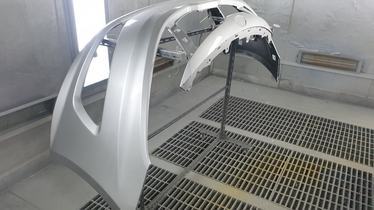 도장이 되어 있지 않은 검은색 플라스틱 범퍼입니다.