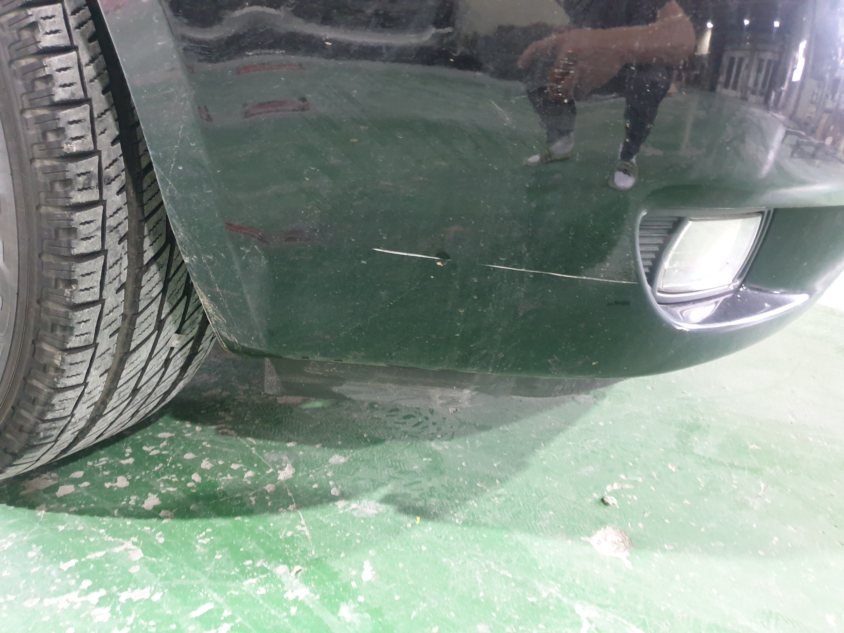 보닛은 자전거 손잡이에 긁혔습니다. 펜더와 범퍼는 예전에 사고 난 것인데 한 번에 수리하기로 하였습니다.